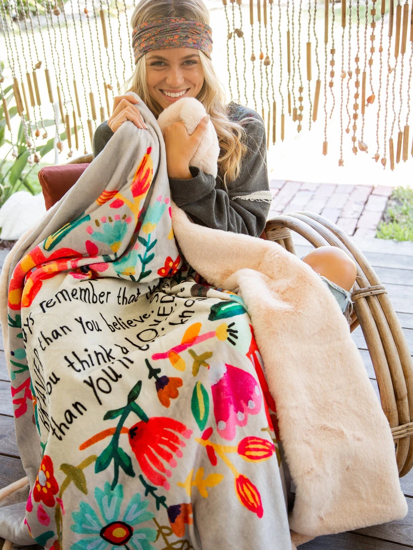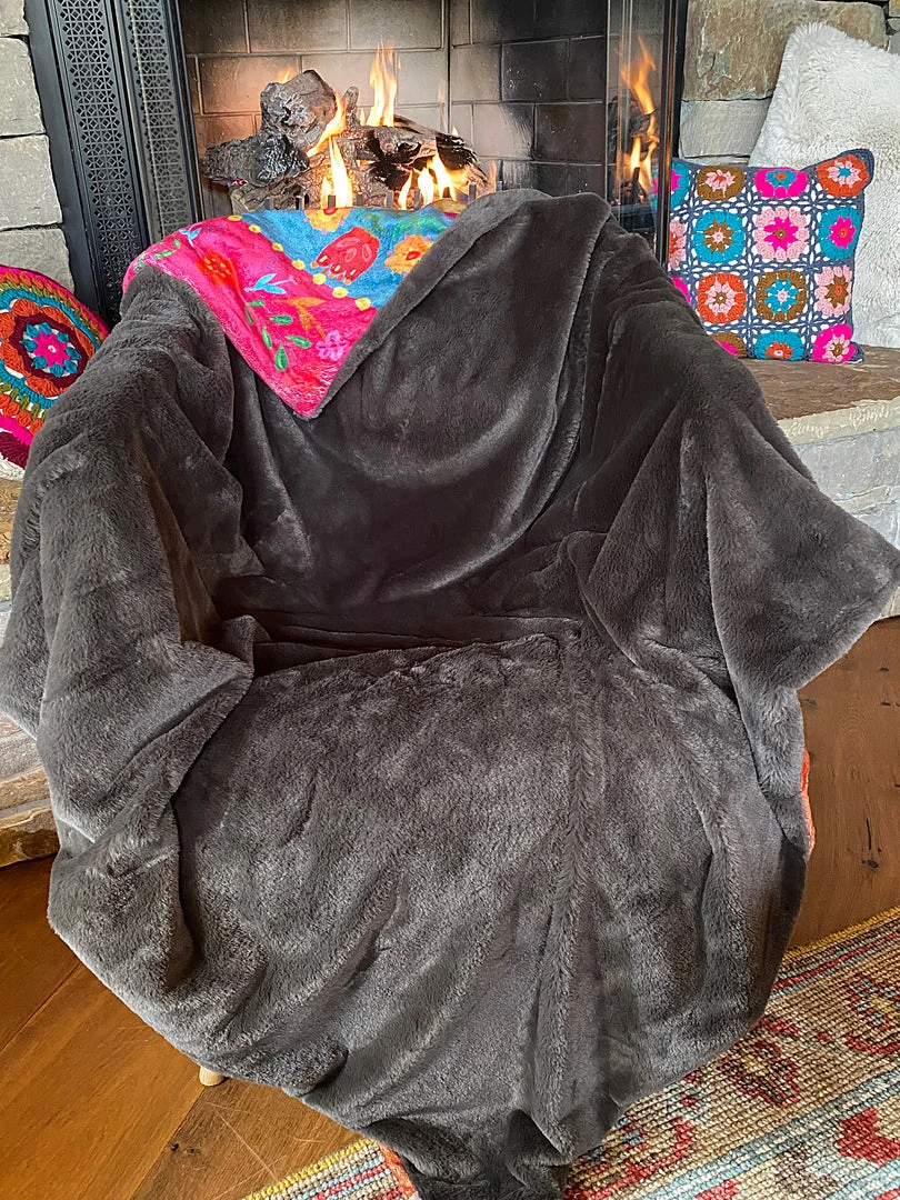 Literally the BEST blanket ever! The Faux Fur Blanket is incredibly soft with a beautifully printed design on one side, and is heavier weight, making it so cozy and comforting! Once you get one, you’ll want one for every room of your house!