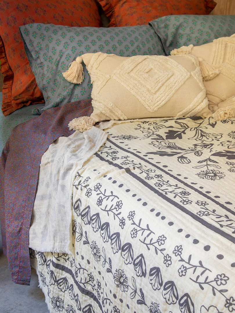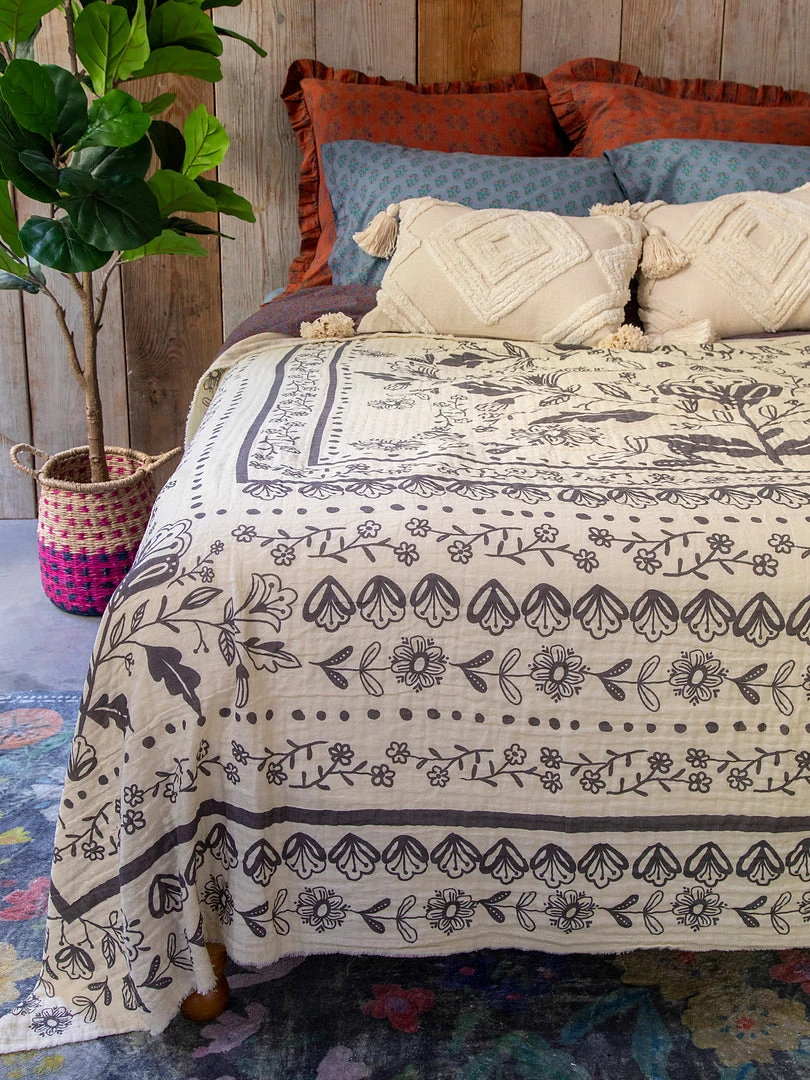 We love beautiful bedding! The Cotton Gauze Coverlet features super soft printed gauze with fun frayed edges! It looks so cute paired with any of our printed sheets and pillowcases! Good bedding is so important… you’ll be obsessed! This is also beautiful used as a large tapestry, sofa cover, or taking on a picnic!