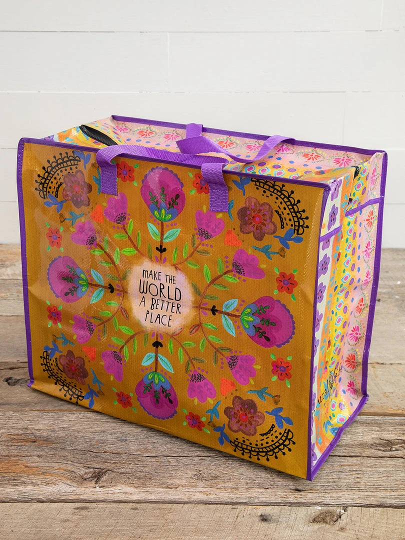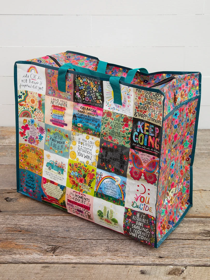 If you haven’t used our Jumbo Zip Tote yet, you’re in for a treat! Our Jumbo Zip Tote is perfect for road trips, dorm moves, shopping sprees, park days, beach excursions, gift wrapping, book toting, and more! Use them in a kid’s room as a home for stuffed animals. Give your linen closet a long overdue makeover by stashing extra sheets, blankets, or pillows in our Jumbo Zip Tote—adorable and organized! We like using them for off-season clothing storage too! Our totes are sure to bring cheer wherever they’re used. Since they easily wipe clean and fold flat for storage, keep a supply for any need that might arise.