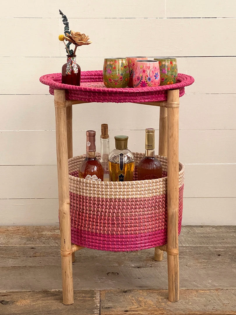 We love this boho side table! The Rattan Side Table features a removable tray on top and basket storage underneath for holding your favorite throw blanket or small plant! It makes the perfect little side table in your living room or nightstand next to your bed!