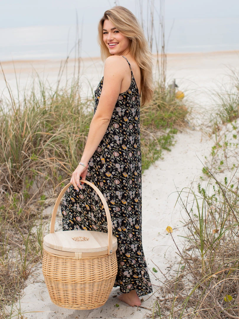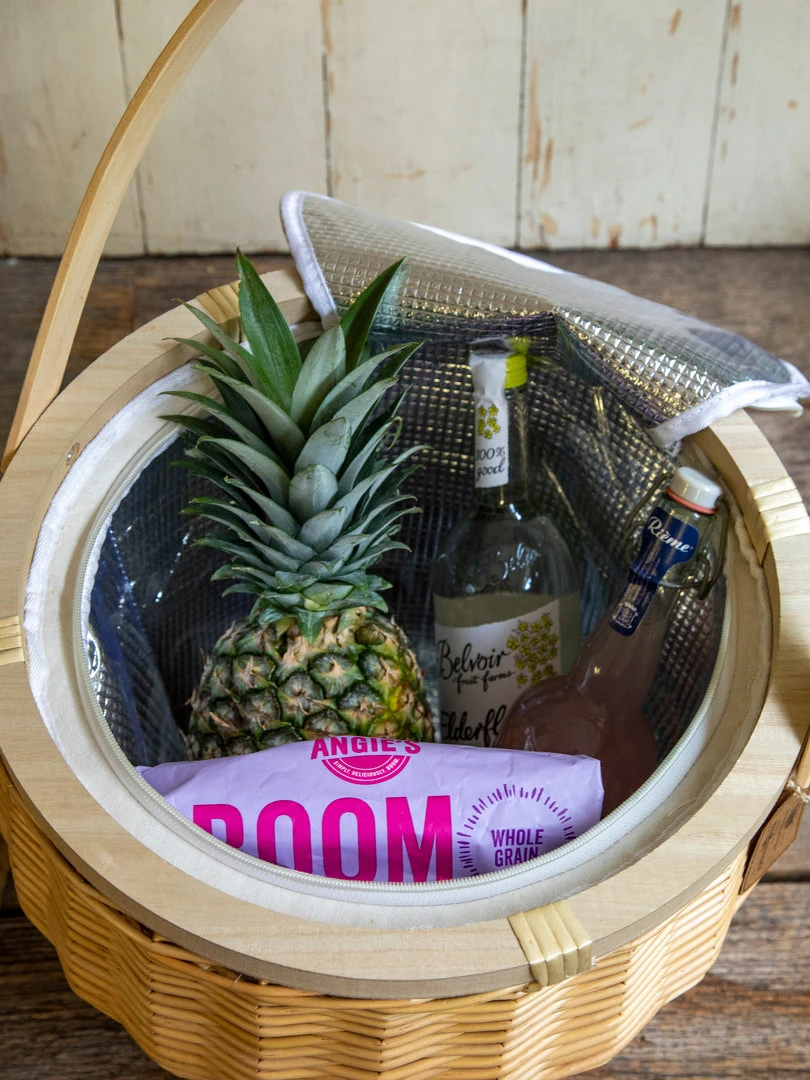 Meet the perfect Picnic Basket! It features a wooden lid that you can remove and turn into a cheese board and it’s fully insulated to keep your drinks and snacks cool…oh, and it even fits a wine bottle! It’s so lightweight and easy to tote down to the beach, to a picnic or camping! Our favorite part about it is, it doubles as a cute picnic table to put all your little things on!