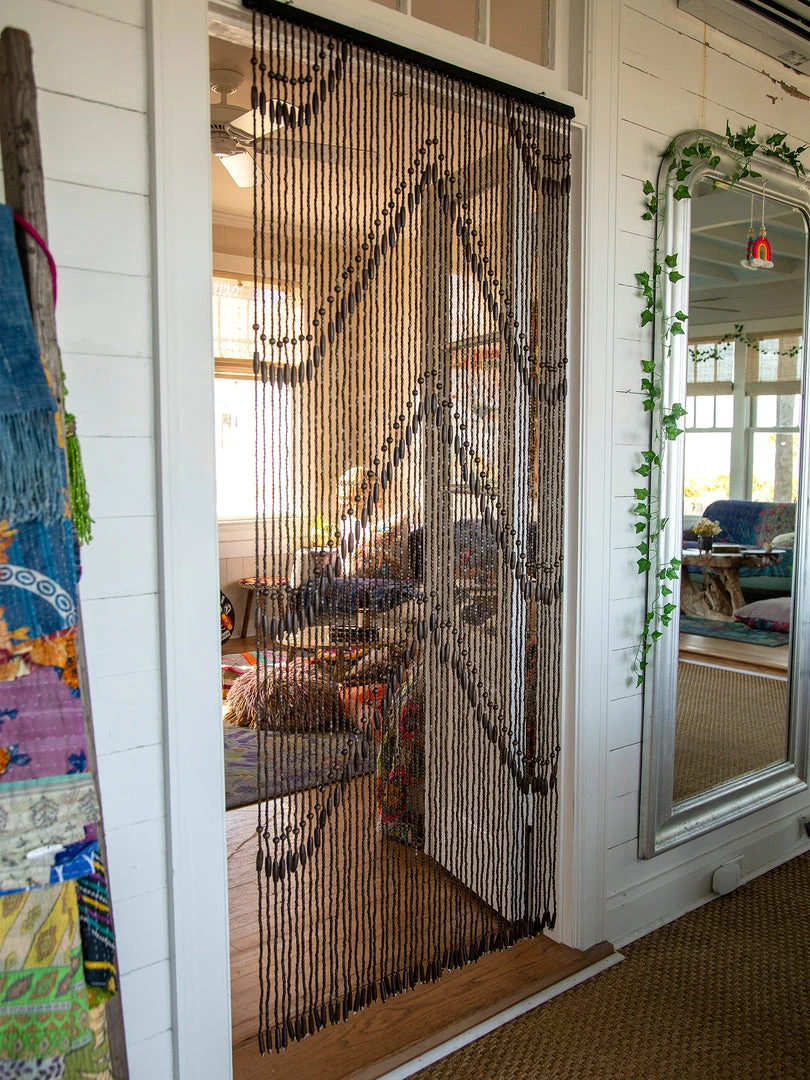 We’re so excited about the Bungalow Beaded Curtain! It features a fun beaded design with a groovy vibe and hooks at the top for easy hanging! There are so many things you can do with it, like hang it in a window, in your dorm, use it as a room divider, on a covered porch or as a curtain! It’s so different and unique, we have them all over the house!