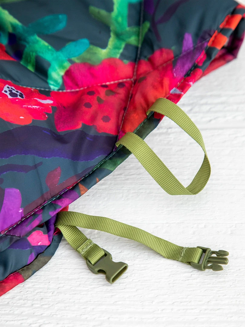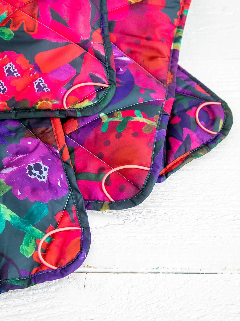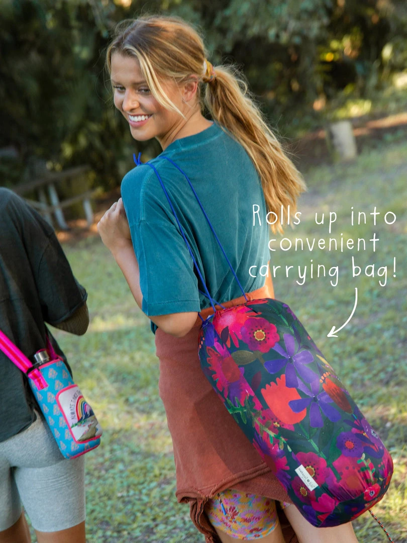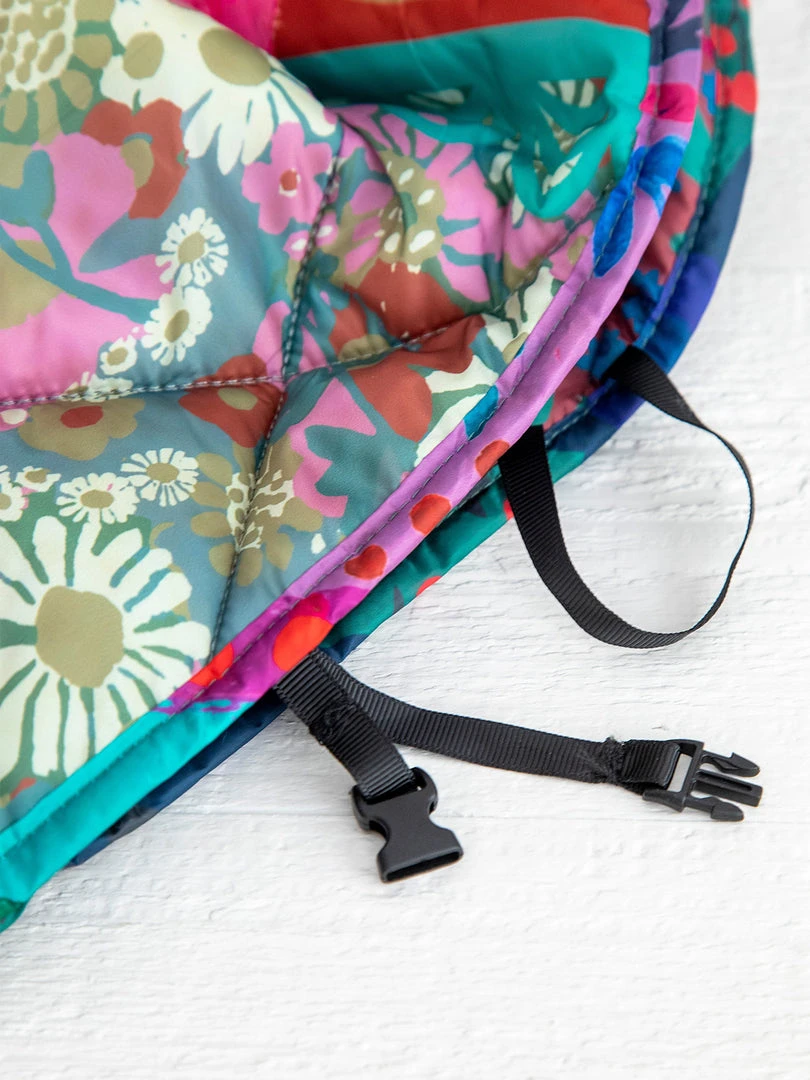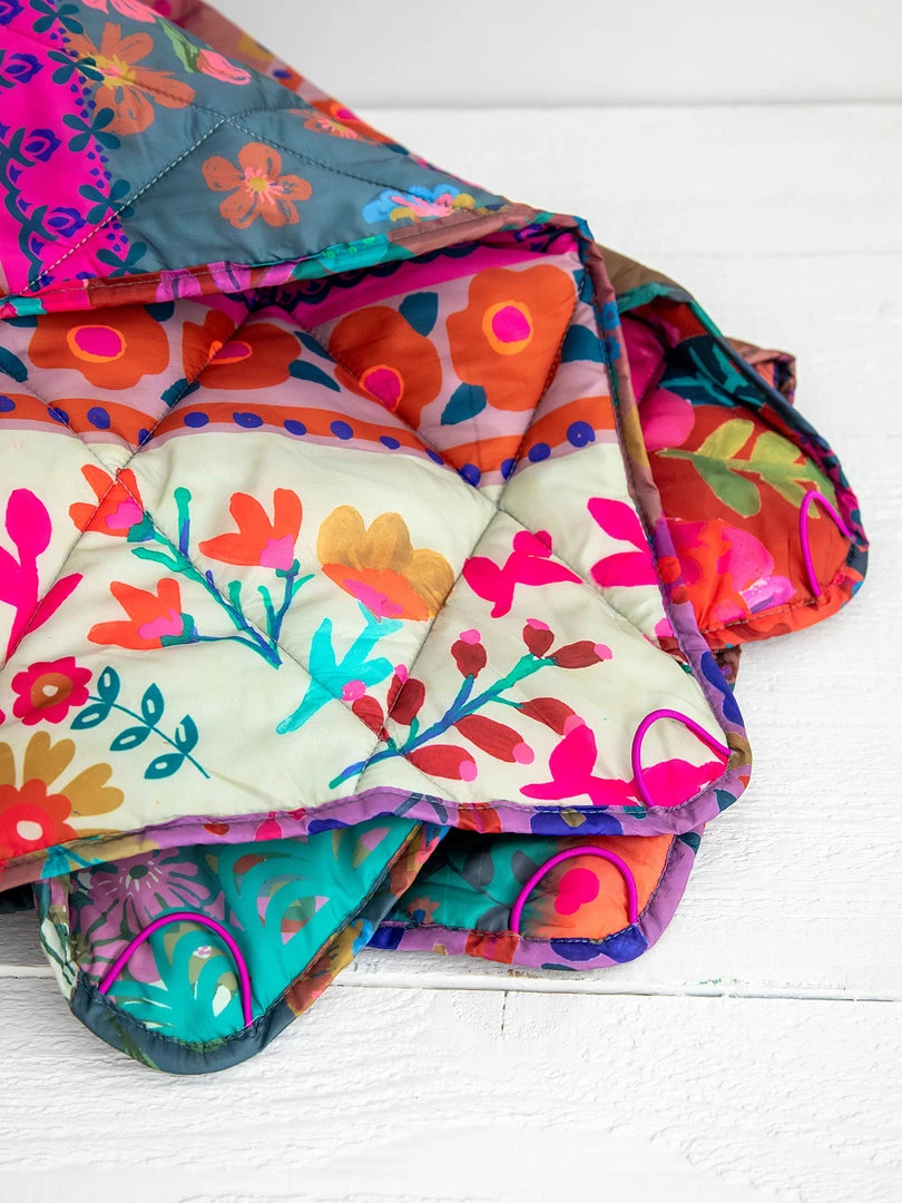 The Camp Quilt is so cool and we’re absolutely loving it! It’s washable, lightweight & easy to pack! It’s wind & water resistant, making it perfect for camping and beach nights… but can also be used indoors for sleepovers or even to keep in your car for when you need it! It’s like a sleeping bag without the zipper! It features corner loops to stake it to the ground and a cape clip so you can wear it and be hands-free! While our camp blankets are not temperature rated, they should keep you plenty warm. Need something warmer? Layer with 2 blankets!