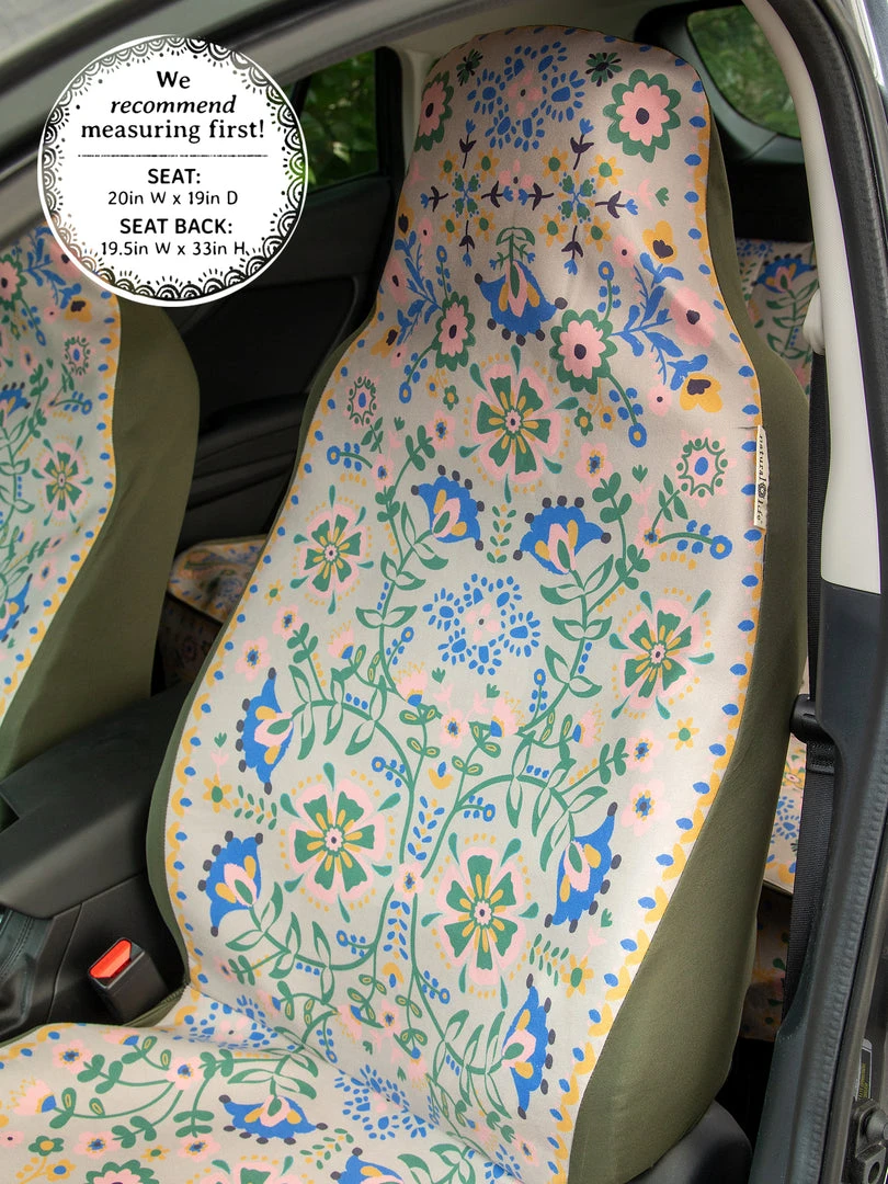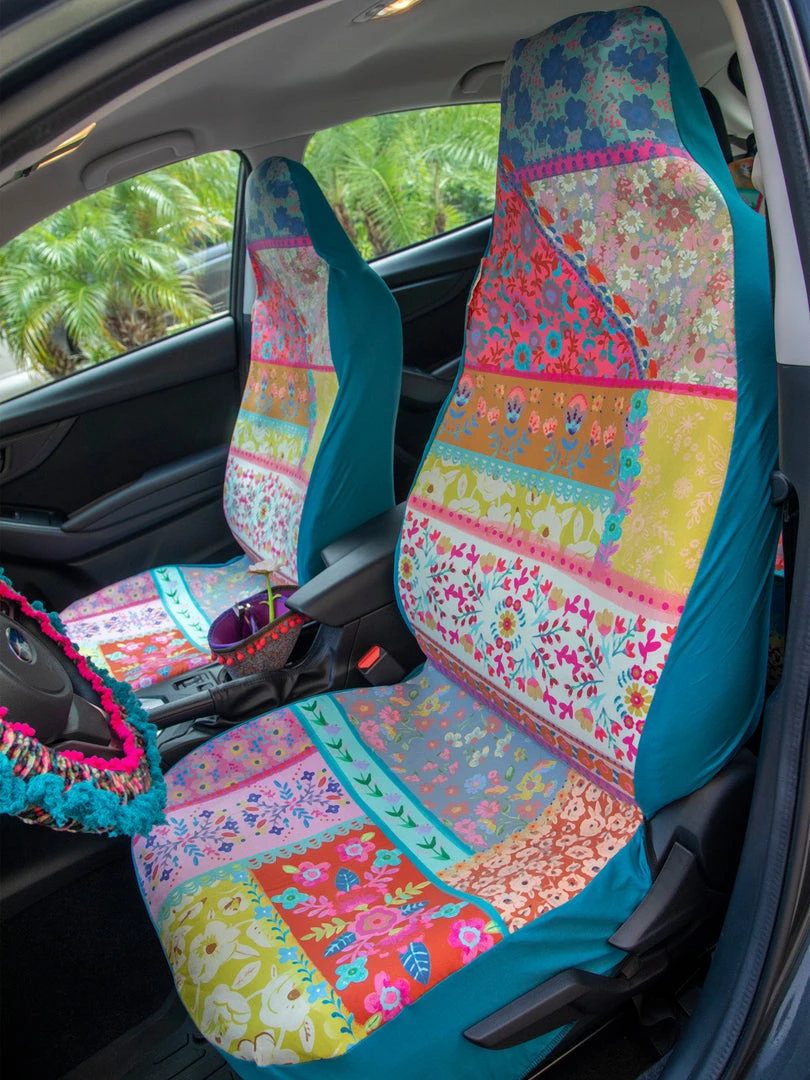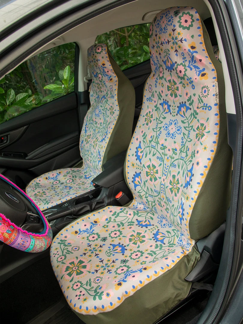 The best car accessory ever! These Seat Covers feature a secure fit that works for most car and SUV seats, but we do recommend measuring your seats before just to make sure. The Front Seat Covers are sold as a set of 2 and the Back Seat sold as a single. They’re printed with beautiful artwork and are super functional to help protect your seats from spills, stains, tearing and fading. They add a cute print to your car and make driving so much more fun!