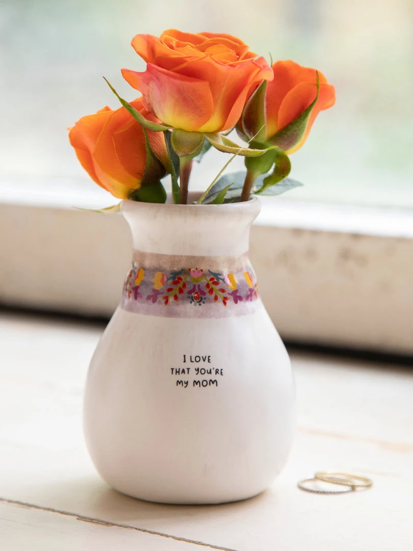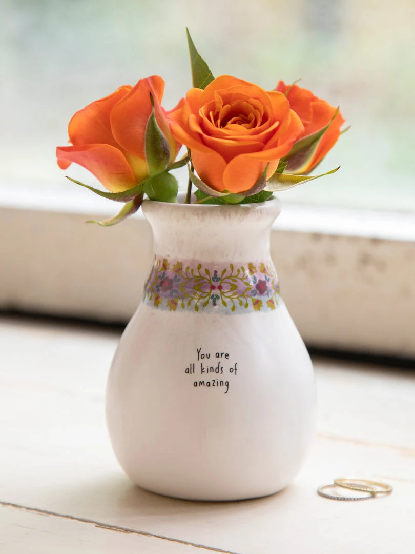 The Catalina Bud Vase is so sweet and makes a thoughtful gift, especially given with a flower inside! It features a hand-crafted look, a sweet sentiment and a pretty border design… making any space a little bit brighter!
