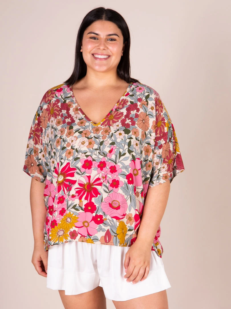 The Easy V-Neck Top is exactly what it sounds like… easy and relaxed! It features a pretty floral print, dolman sleeves and an oversized boxy fit. It looks so cute paired with our bottoms or your favorite pair of jeans. It is the kind of top you can just throw on and go & still look put together!