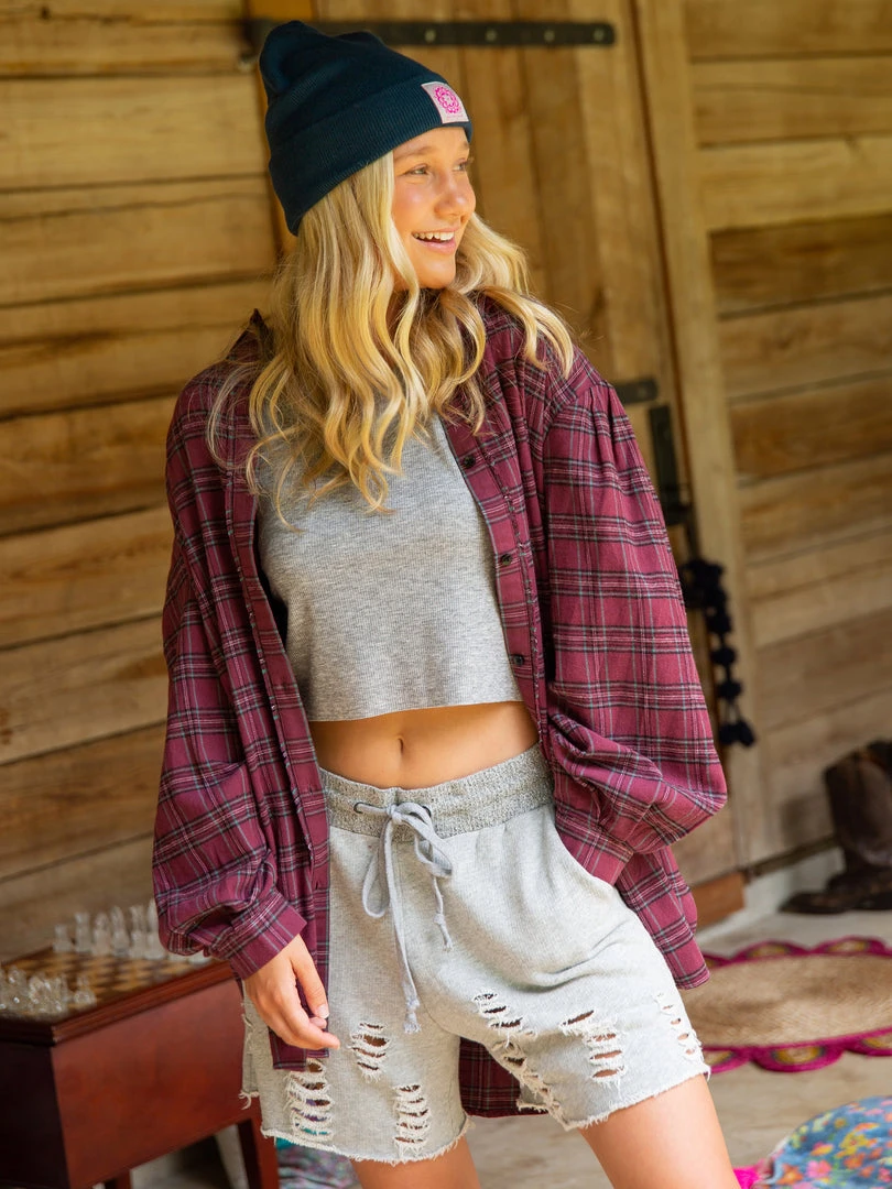 These distressed sweatshorts are so comfy and cool! They’re cut in a relaxed fit for easy pull-on and are meant to be baggy and oversized… like your boyfriend’s gym shorts! Perfect for lounging around the house or cute paired with a graphic tee or tank to wear out and about!