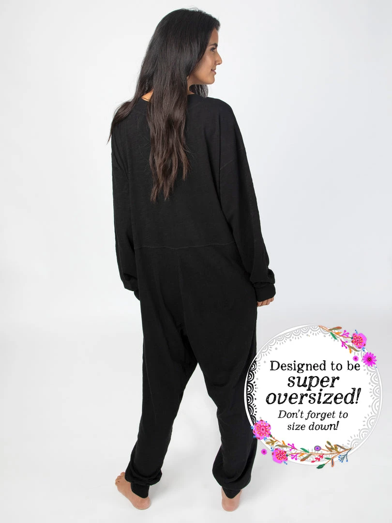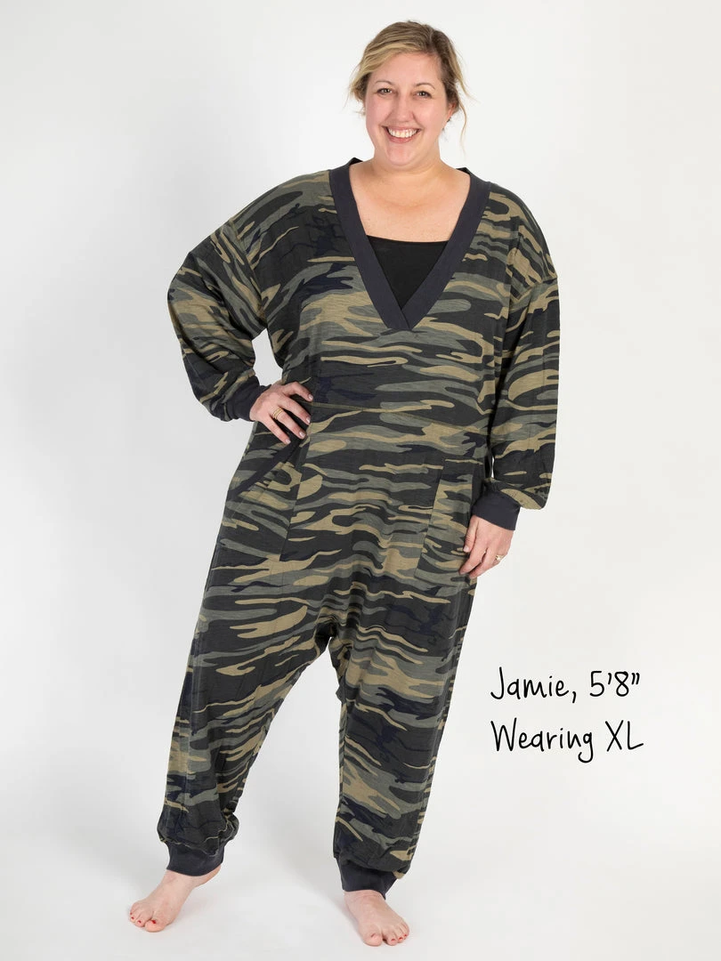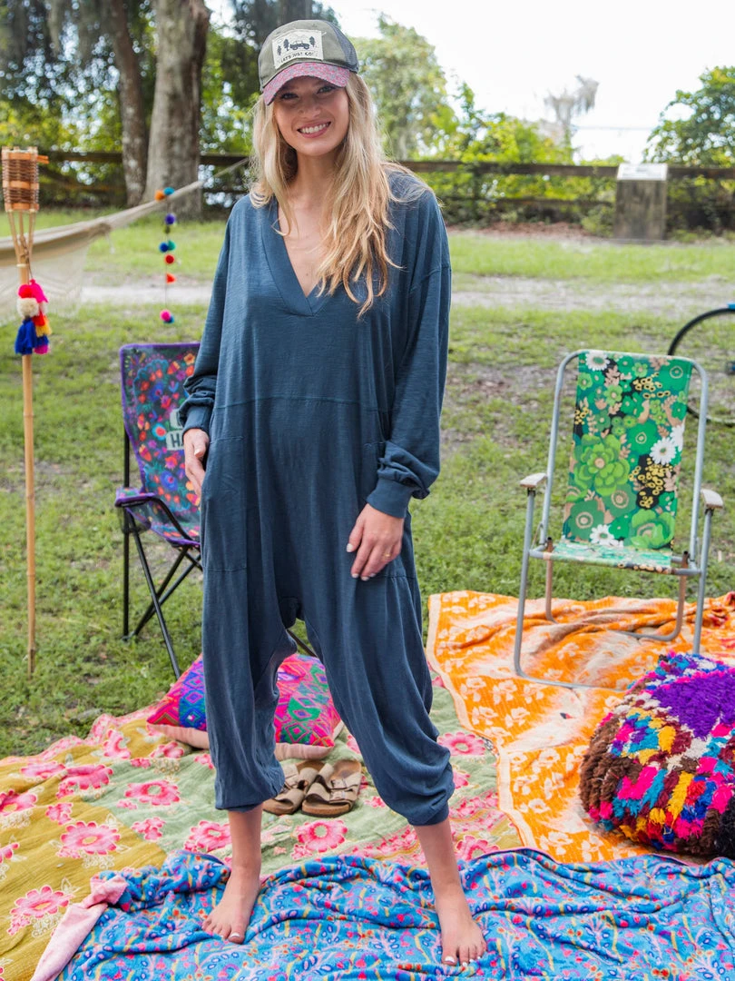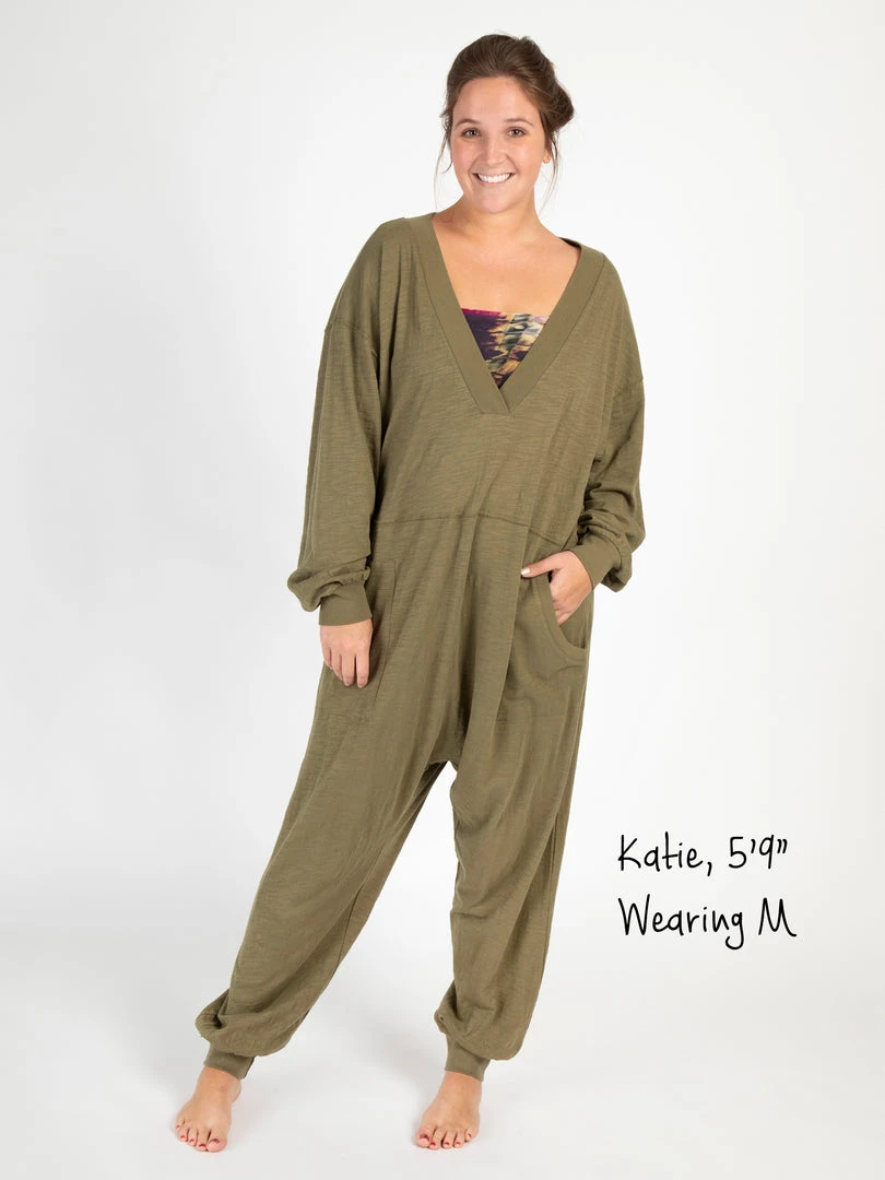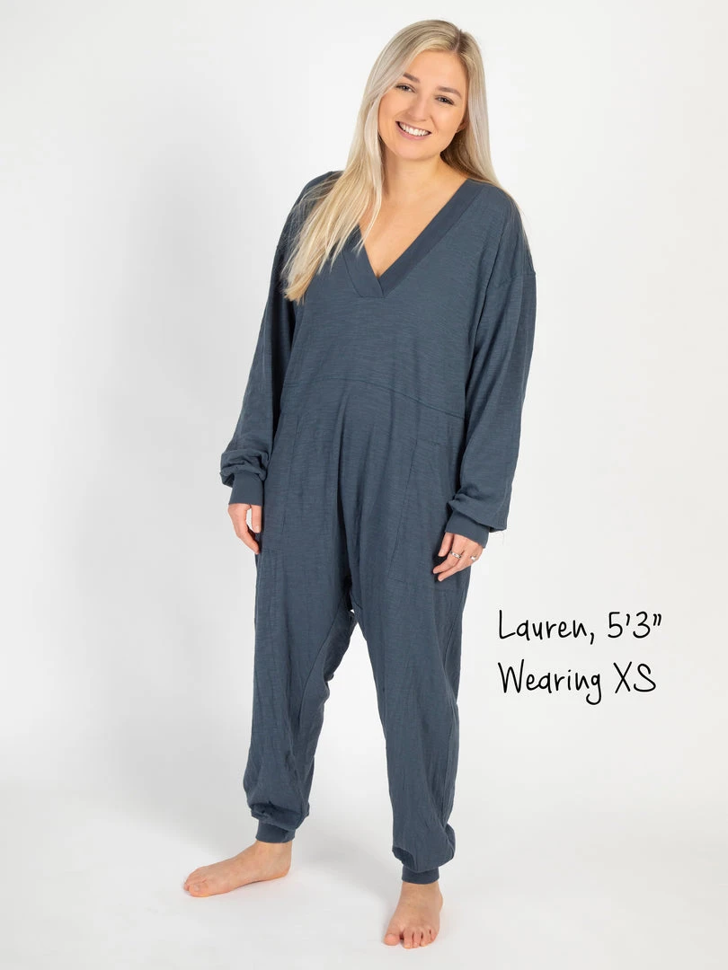 Sometimes you need something to throw on that is not only the comfiest outfit ever, but also cute enough to rock at the grocery store, dog walk or coffee run! The Johnnie Jumpsuit was designed to be super oversized with a drop crotch & a slouchy COZY fit! The low v-neck is perfect to pair with a colorful bandeau, cami or lace bralette. If you’re unsure what size to get, we recommend to sizing down two sizes!