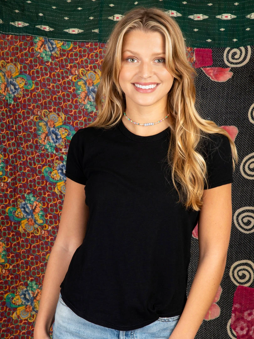 The Weekend Tee is your perfect, basic tee! It is so comfy and easy to wear with literally anything! We love to layer it under our dresses, jumpsuits & kimonos… it’s so versatile!