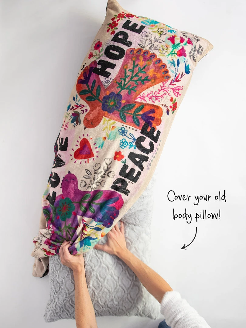 We made it SO easy for you to make your old body pillow new again! We love that you can buy a body pillow from anywhere and use our cute cover to make it look completely different! It’s so easy to put on & take off to throw in the wash. The Cozy Body Pillow Cover features a sweet sentiment and colorful artwork and looks so cute thrown on your bed and paired with our other boho pillows!