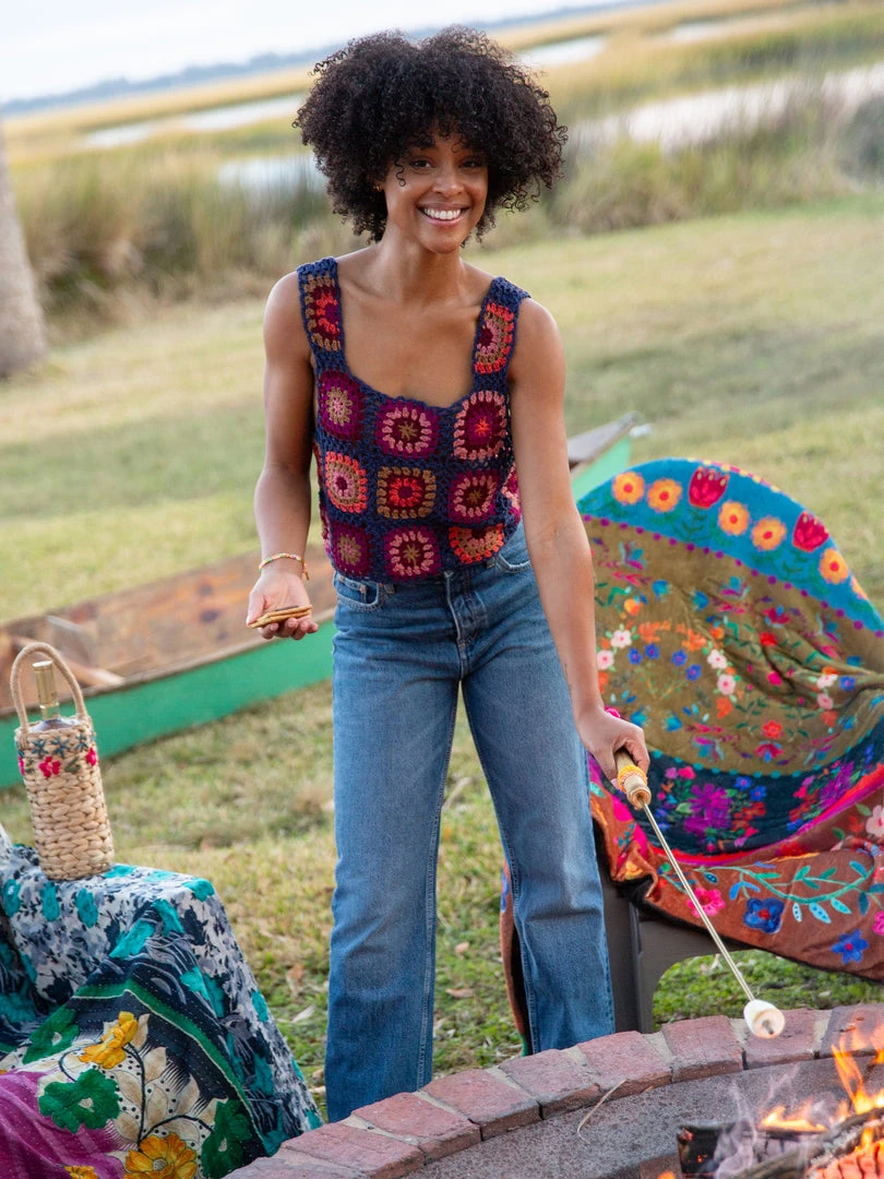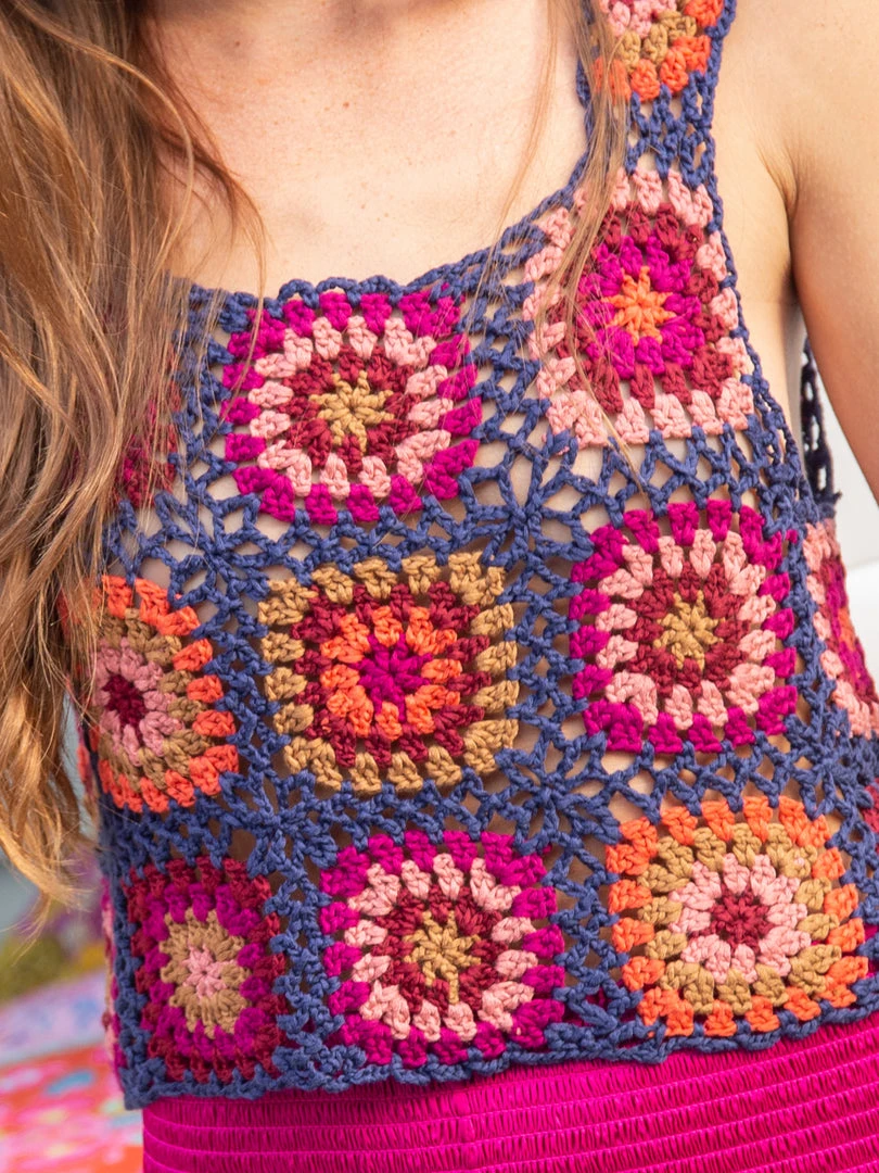 The Crochet Top is the perfect top to throw on and layer over a bralette, dress or bathing suit! It features a cropped fit with a relaxed silhouette. It’s such a cute and special piece for your wardrobe and is an instant outfit maker! It’s handmade, so sizing and color placement will vary slightly. We recommend hand washing and hanging to dry!
