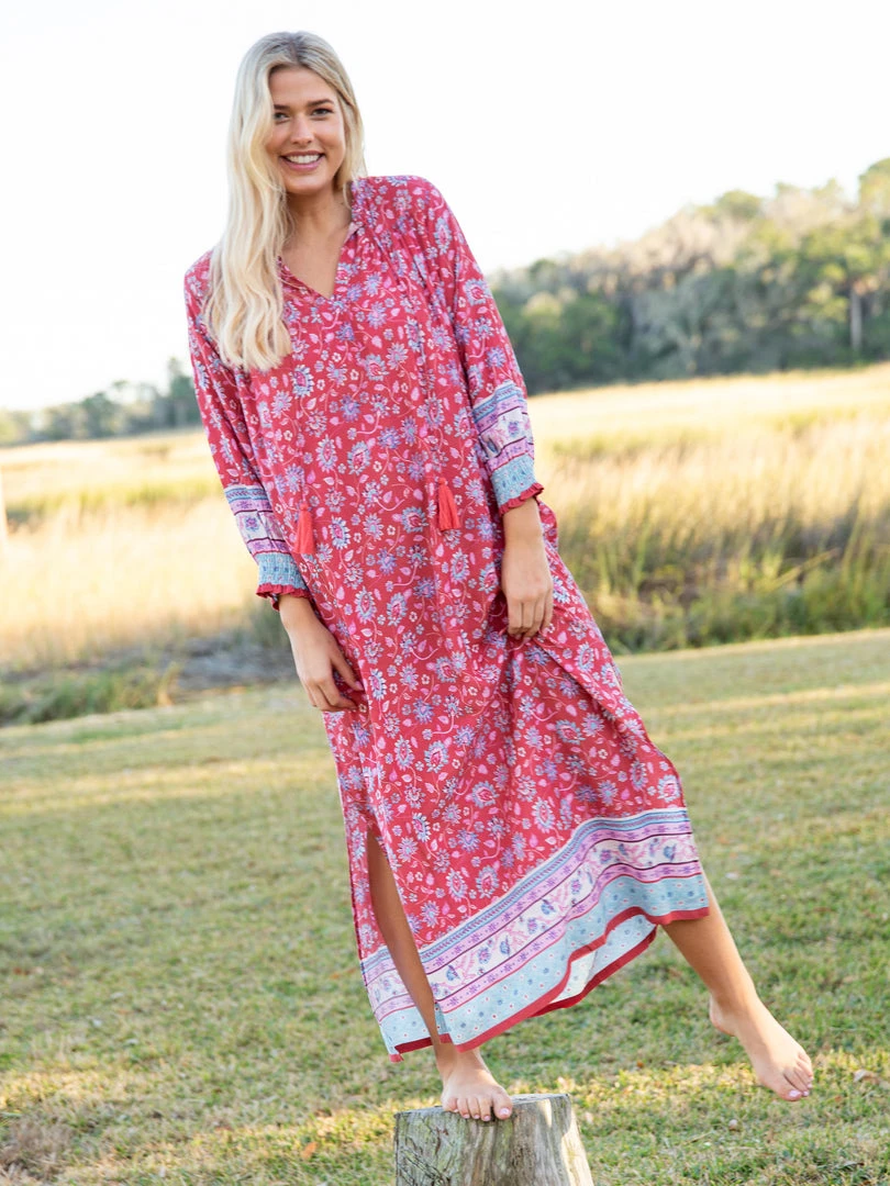 You loved the Dara Mini Dress so much, we had to make a Dara Maxi… and it’s so beautiful! It features a v-neckline with tassel ties, smocked sleeve openings & a pretty border print! It’s lightweight, making it so comfy and easy to wear – literally anywhere!