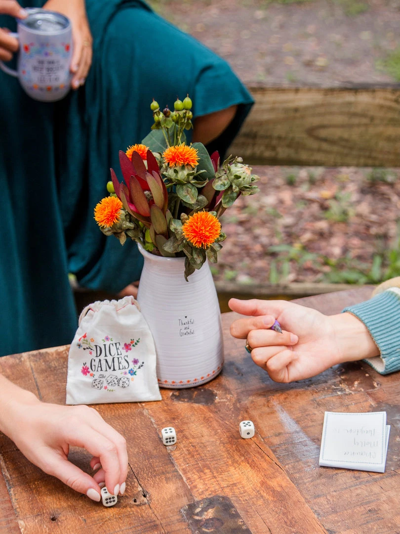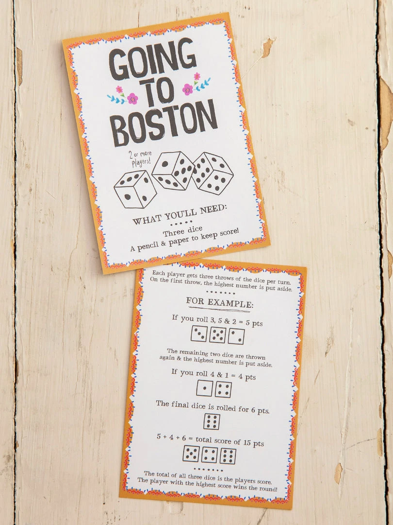 We love Dice Games, so we made them part of our nostalgic game collection! Inside of the cute drawstring bag you’ll find 3 game cards with instructions on how to play Bunco, LCR (this is a fan fave at our office) and Going to Boston! It also comes with a notepad and pencil to keep score. It’s the perfect little gift to bring to a party for the hostess or to get for yourself to play with friends!