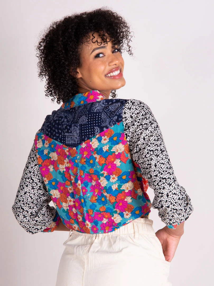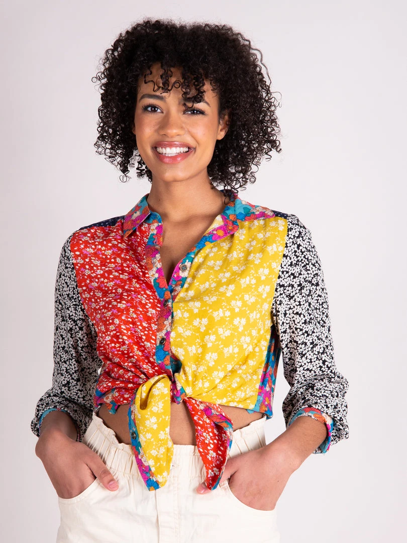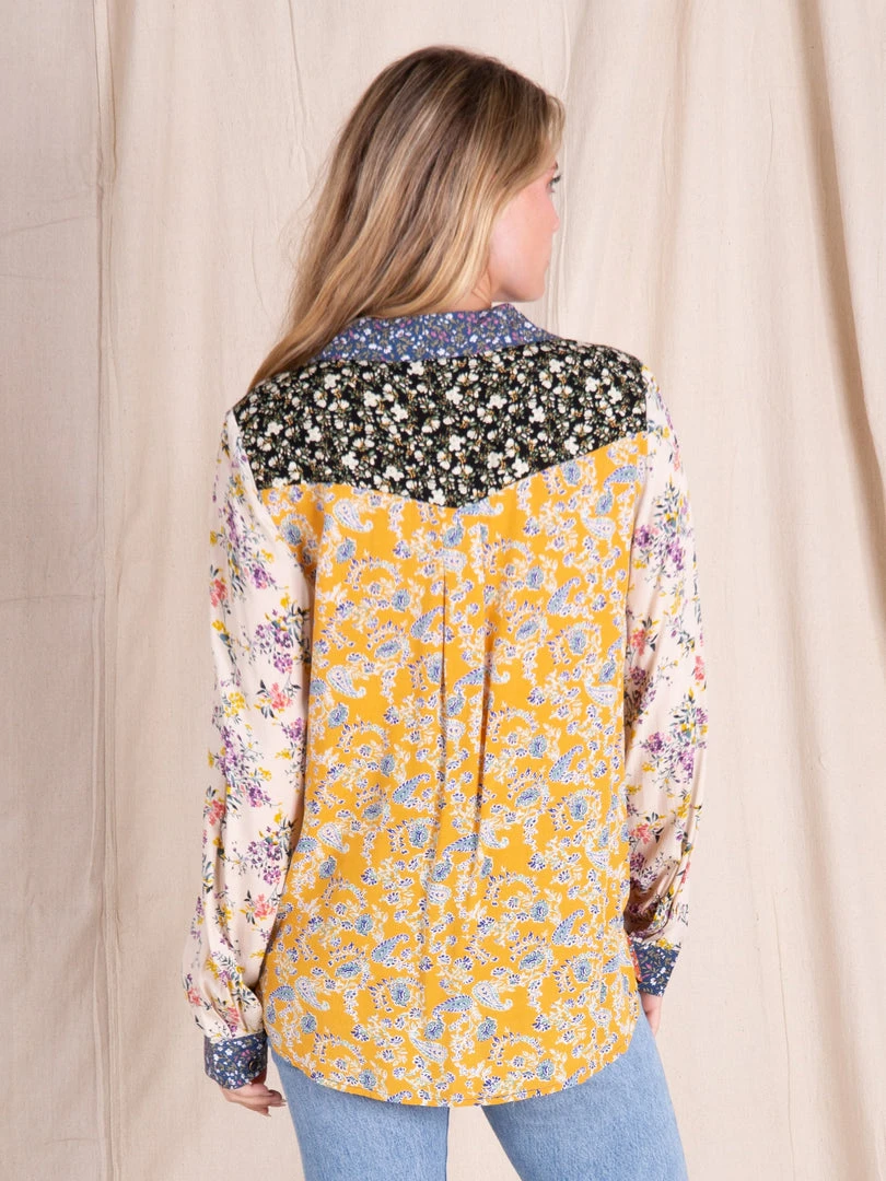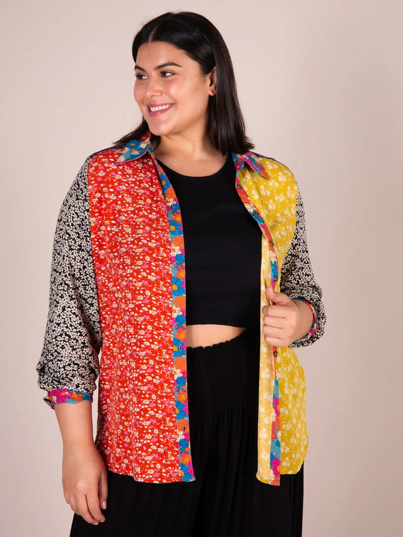 The Esme Button Down Shirt is the perfect everyday top! It features crinkle rayon fabric, a pocket, and functioning cuff sleeves! It has a slight high low hem and looks so cute worn as is, tied up over a dress, or with jeans! The red gold mix print colorway is running small, so we recommend sizing up!