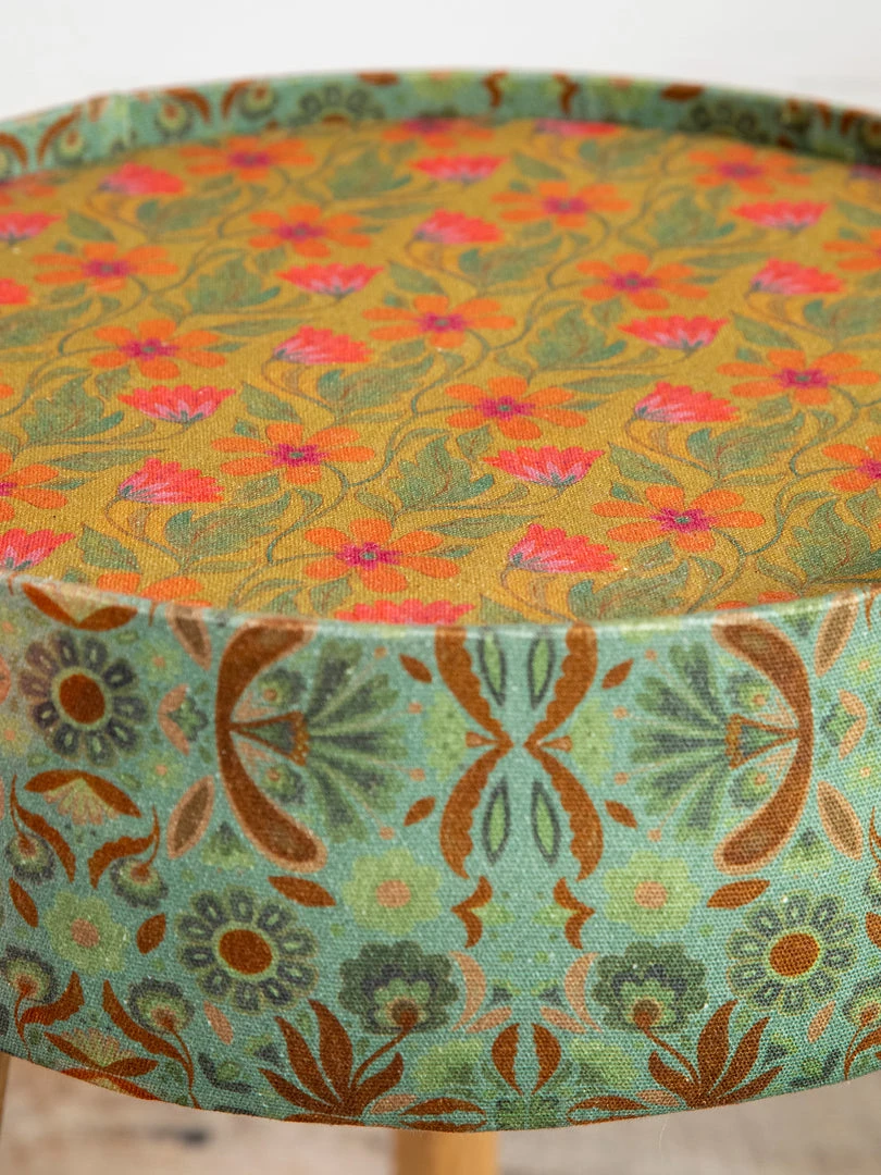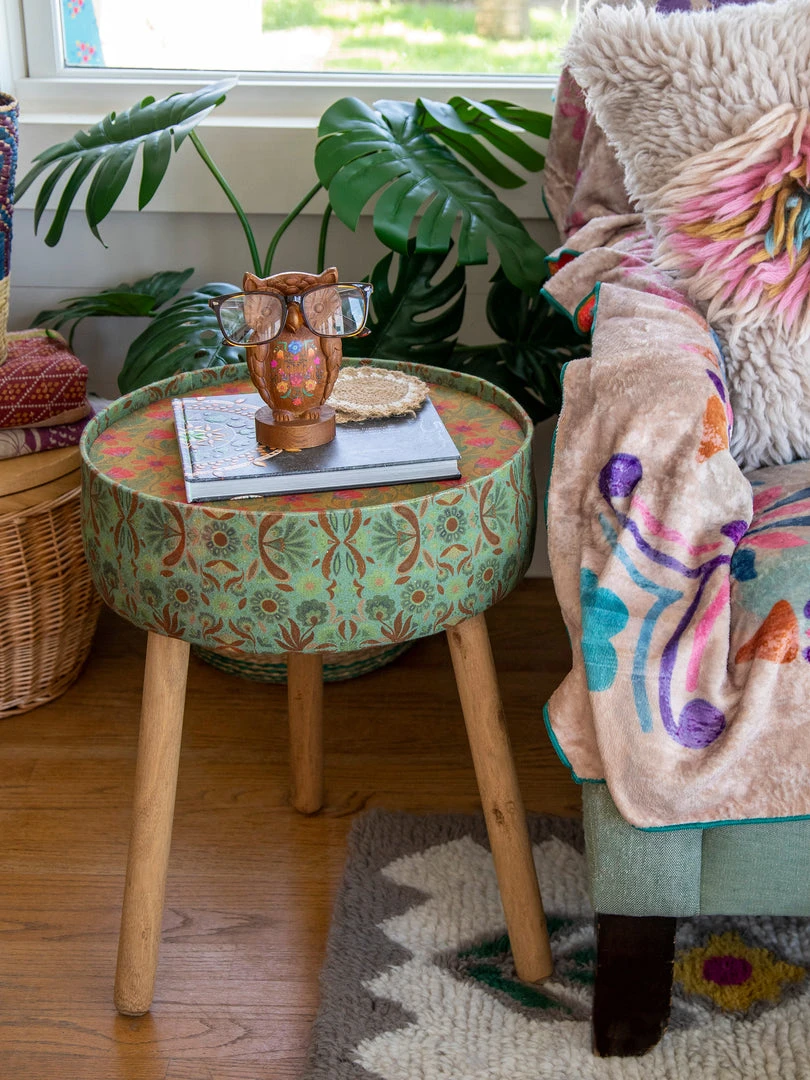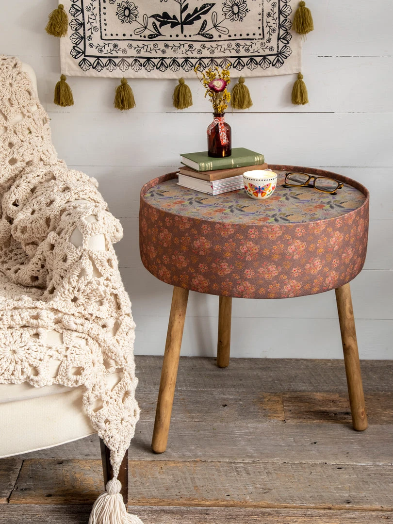 We love getting inspired by traveling and antique shopping, which were the inspiration behind this Fabric Wrapped Side Table! It features a hard top with eucalyptus wood legs and is wrapped in a bohemian printed canvas that looks so cute in the home! It does require assembly, but it’s super easy to put together!