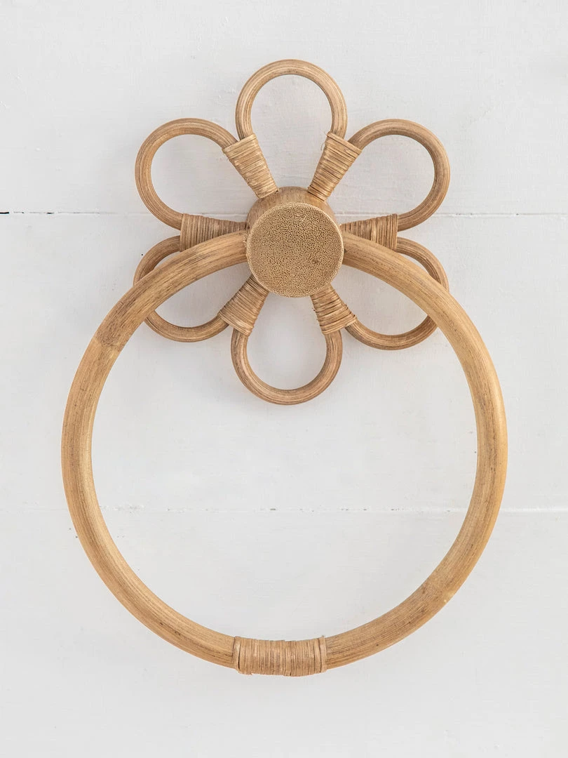 The Floral Rattan Towel Ring is the perfect addition to every bohemian bathroom! The towel ring hangs from a sweet flower shape that looks so cute with towels hanging from it. It easily mounts to the wall and even comes with the nail included to hang it!