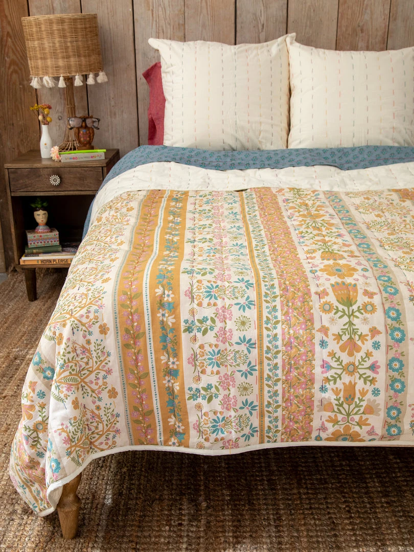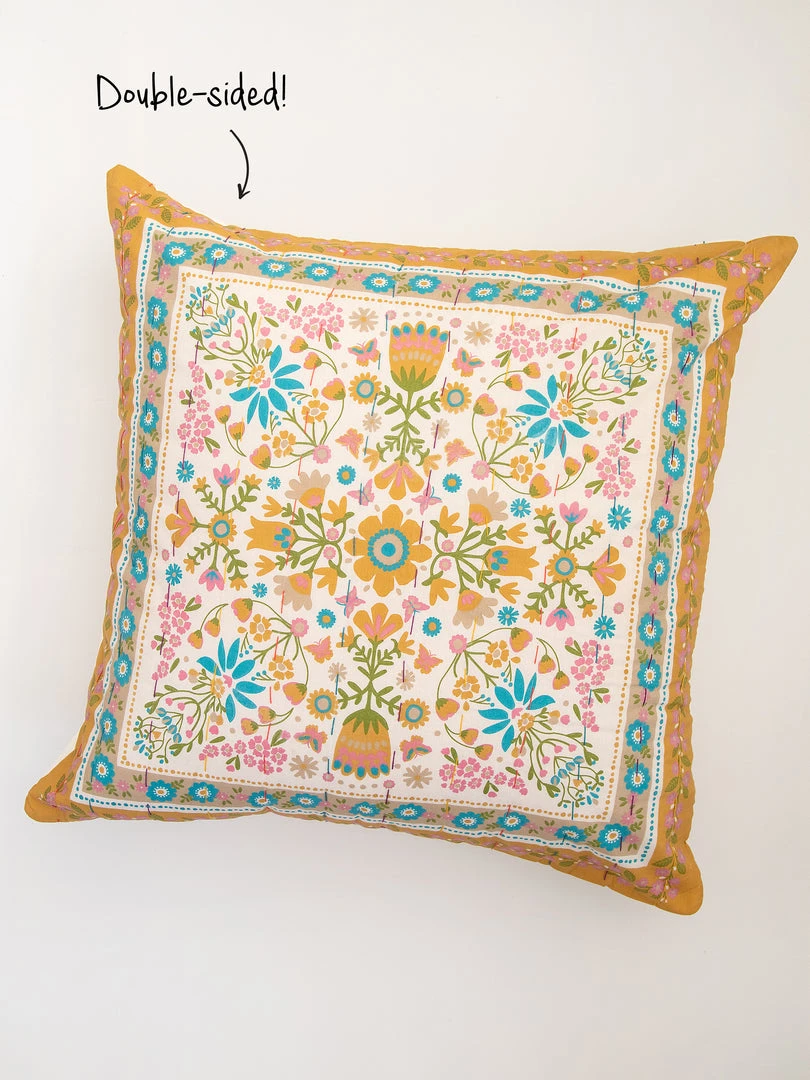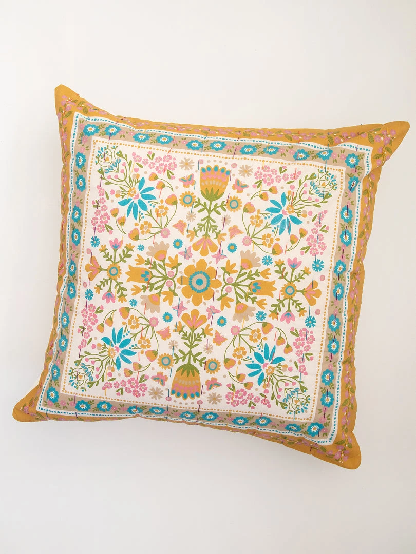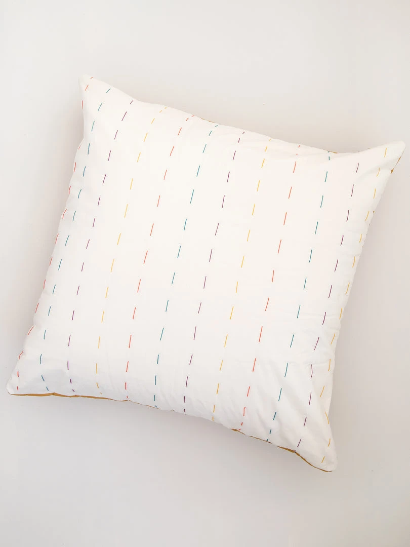 These Border Print Stitch Euro Shams are so pretty and lightweight! They’re made of super soft natural cotton and feature rainbow hand stitching! They’re printed on both sides and look so cute paired with the Border Print Stitch Quilt to make a set or mix and match with our other boho bedding!