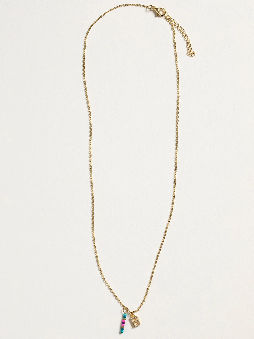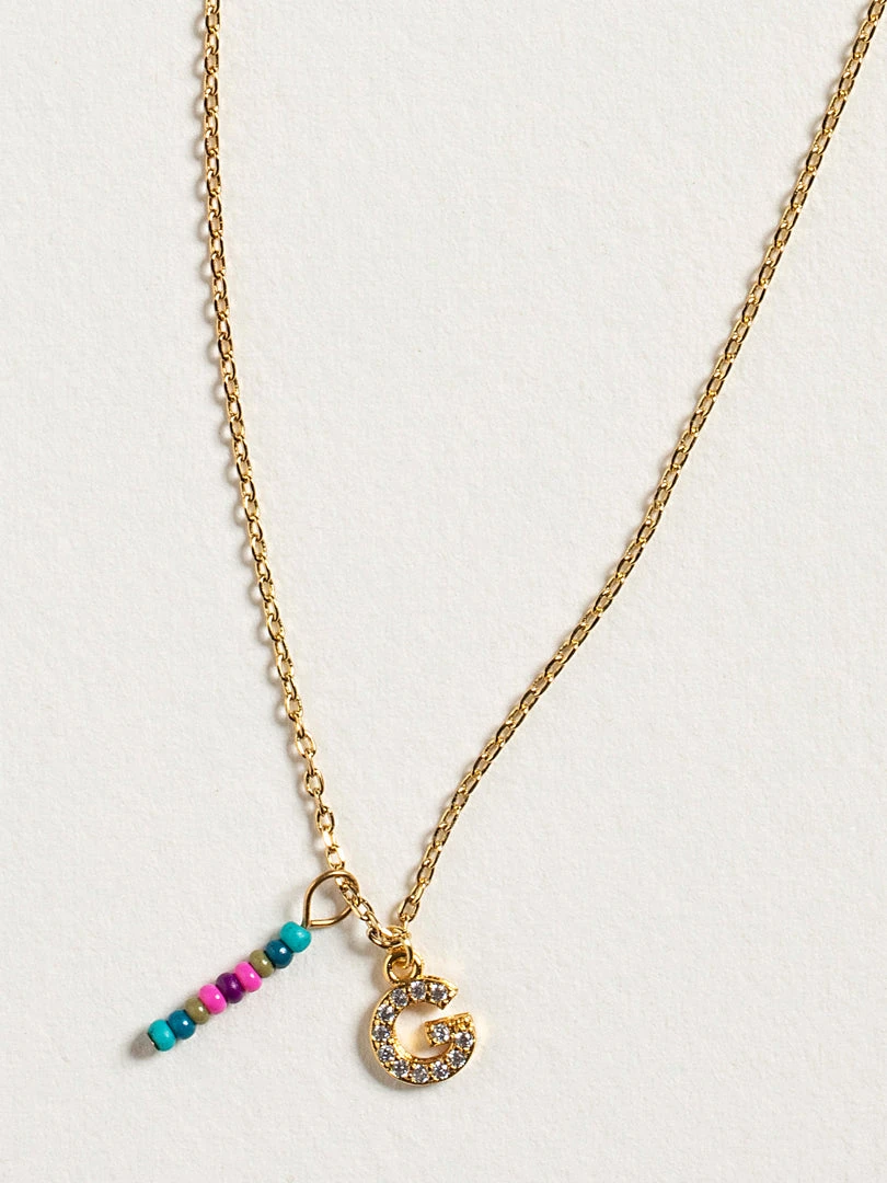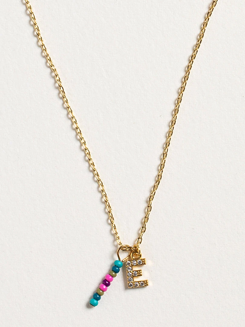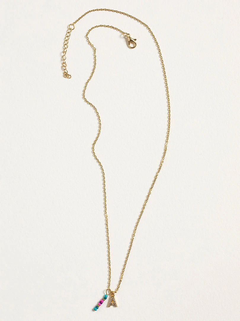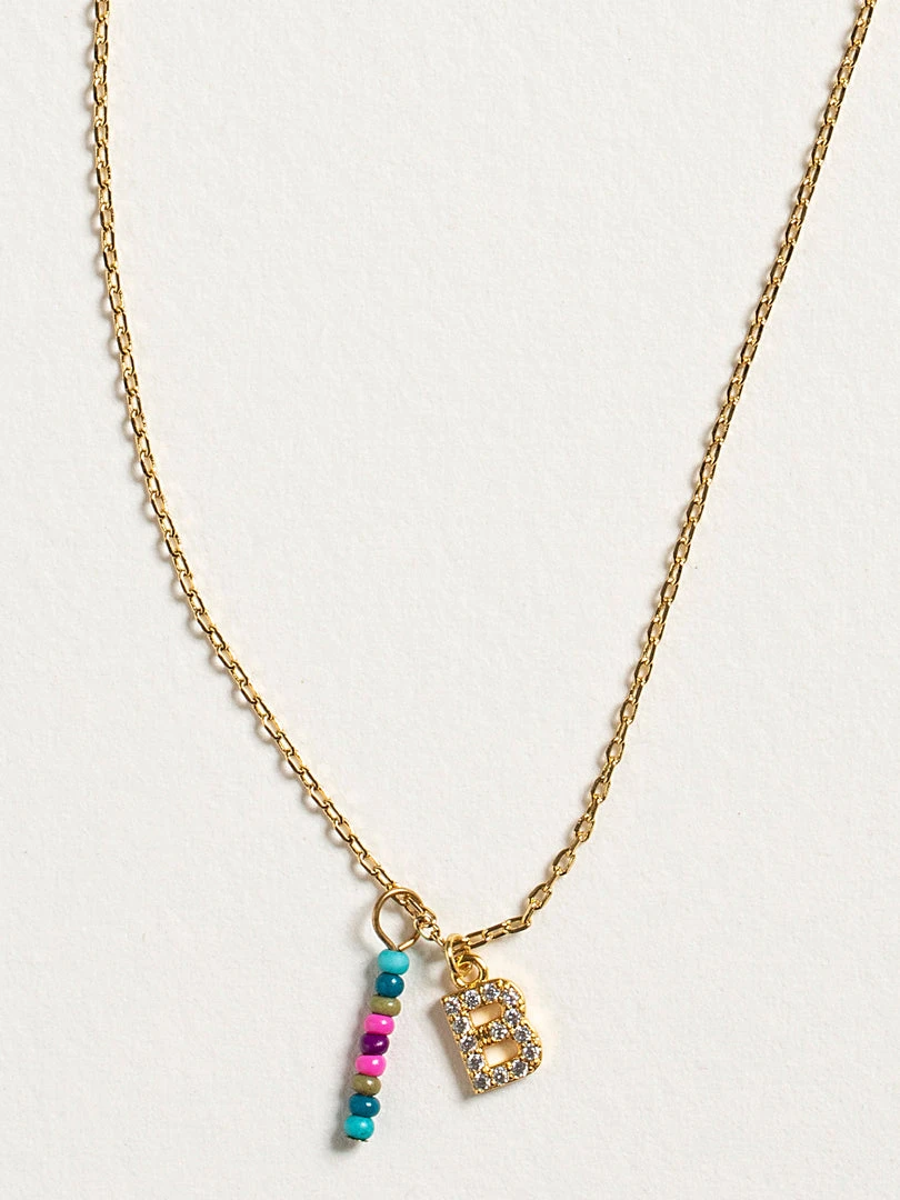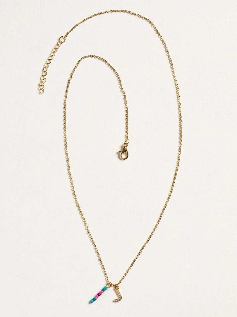 Personalized gifts are the best for giving! This necklace features a single gold-plated initial charm with tiny rhinestones and a colorful hand-beaded charm to add to its touch of personalization. It comes in the prettiest givable bag and can adjust up to 19 inches in length, making it great for wearing alone or with our other necklaces for a layered look!