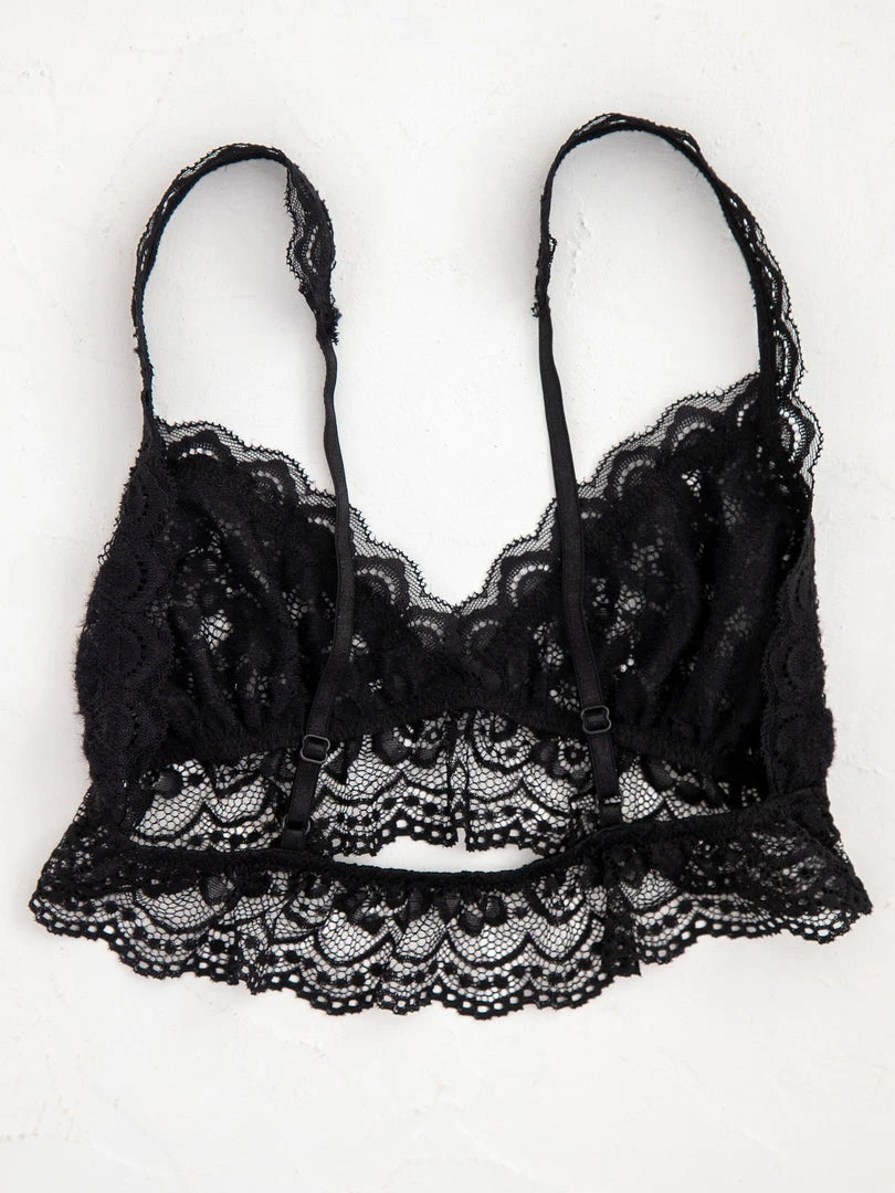 Pretty with a laidback feel! The Lace Bralette features adjustable straps and stretchy lace that’s super comfy! It’s perfect for wearing under our dresses & jumpsuits, or even under our comfy tees or loungewear!