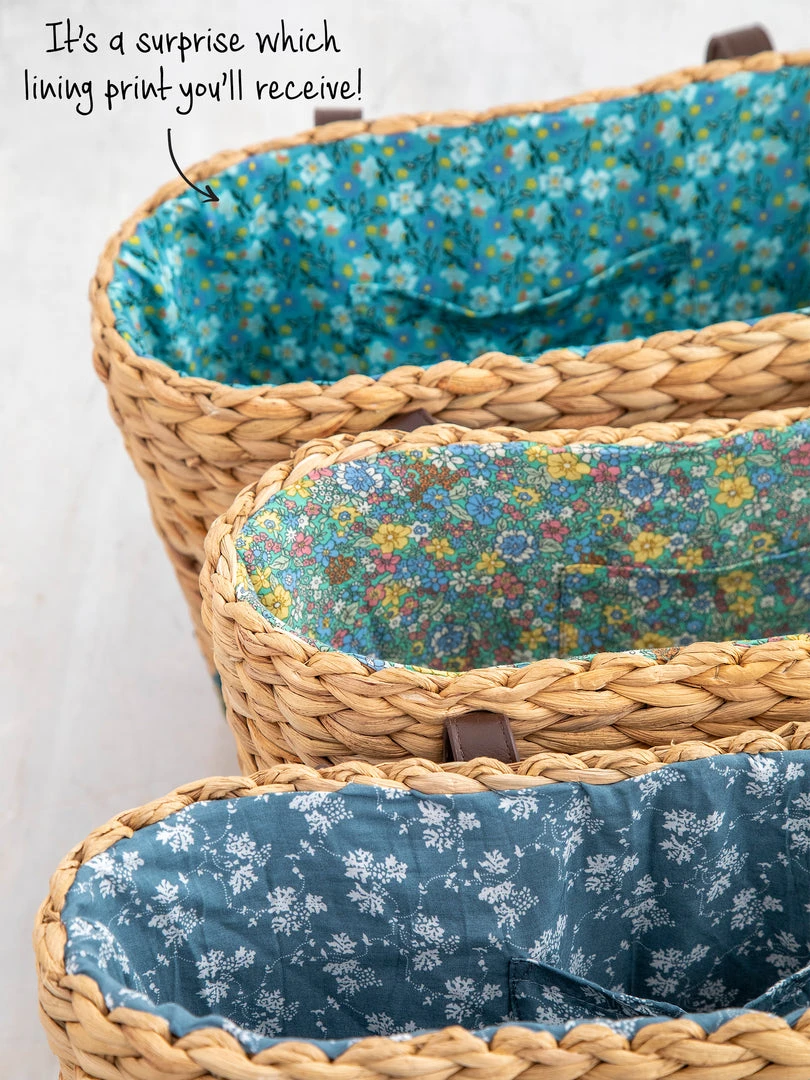 The Nantucket Market Tote is the perfect catch-all tote for your daily essentials or your next beach day! This straw bag is hand-embroidered with vegan leather straps and features the prettiest floral printed lining inside… each bag comes with a different lining, so it’s a fun surprise to see which one of the three prints you get!