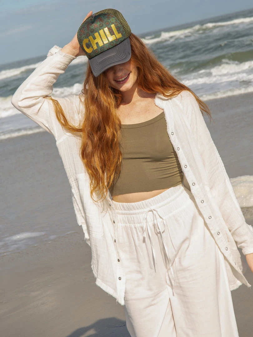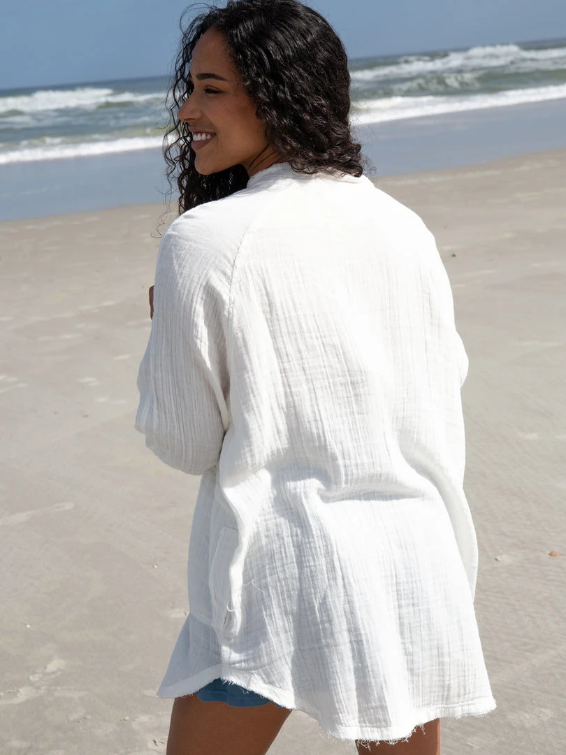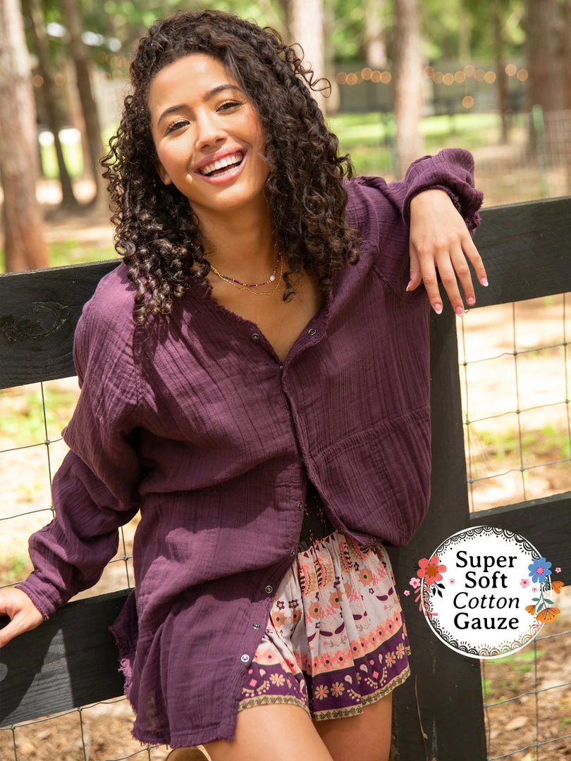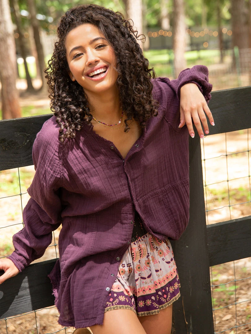 Obsessed with the Laid Back Button Down! It’s made from a cotton gauze material and is so comfy & easy to wear! It looks so good on everyone and we love pairing it with our Bike Shorts! Oh, and it even has pockets!