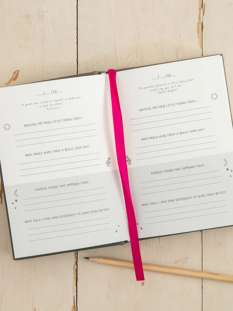 The Live Happy Daily Journal is one of our favorite treasures! This little book is your very own and the ideal space in which to “become”. Each day, the pages will prompt you to remember what you are grateful for each morning and remind you to reflect on how you can be better each night. The little details you capture of your everyday life will help you become the best version of yourself! The journal is 365 pages (you can fill in the date yourself) and each page starts with an inspirational quote at the top. It even comes with a ribbon to mark your spot for the next morning!
