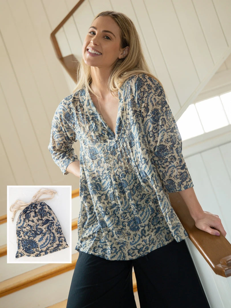 Inspired by our love for traveling… and traveling lightly, this Tunic-In-A-Bag is the coolest concept! It features cotton that is not only super soft, but the tunic actually looks CUTER when it’s crinkly! The best kind of crinkle is when you twist the tunic up and stick it in the cute printed bag that comes with it! It’s so easy to pack in your bag for trips and looks so cute worn over your favorite jeans or thrown over your bathing suit as a cover up! The more you have the better! Fill your drawer with tons of designs!