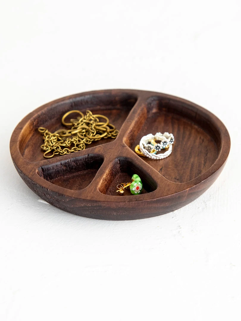 The Peace Sign Trinket Dish is the perfect home for all your jewelry & treasures! We love the different carved sections so you can separate things like earrings, rings, keys and other trinkets! It’s made of wood and looks so pretty sitting on a dresser or bathroom vanity!