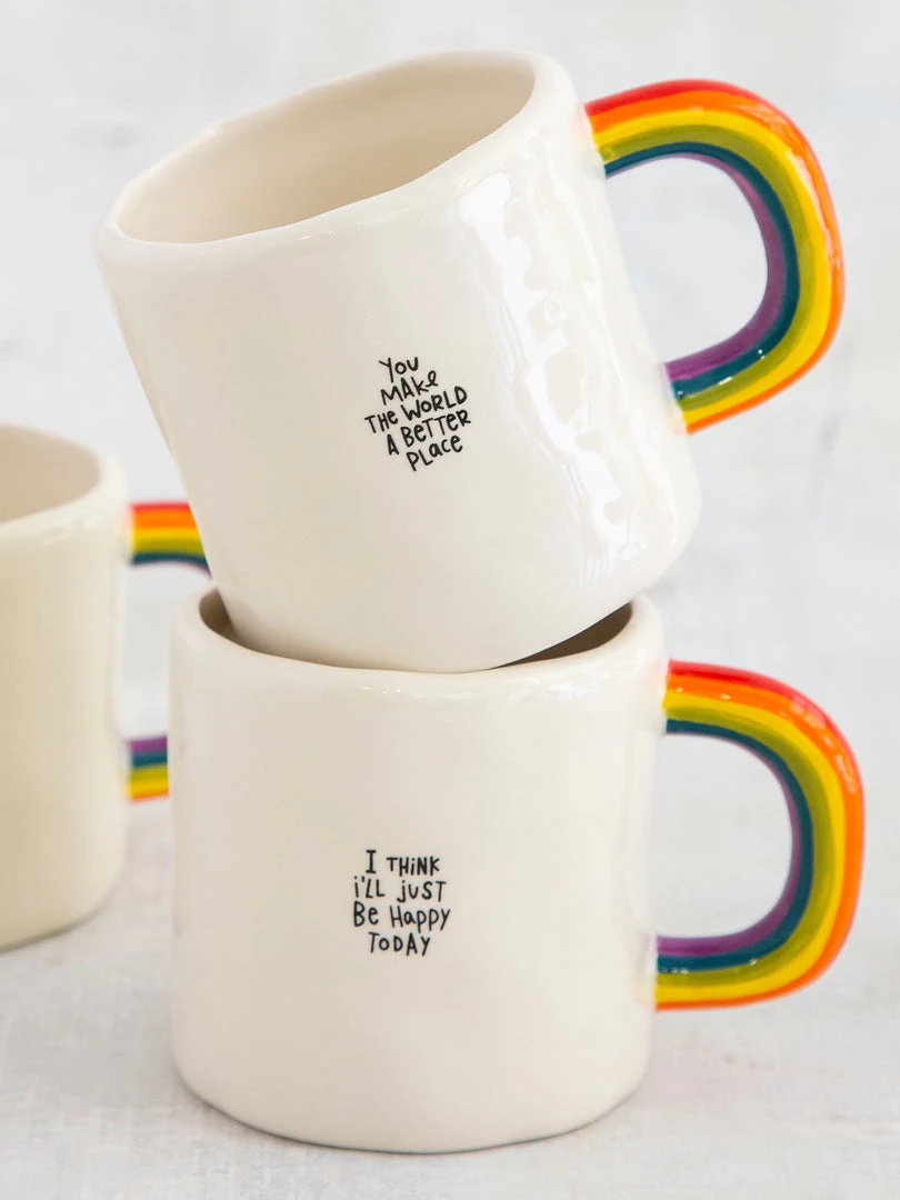 Rainbows make us happy… so we made this cute mug! It is hand molded with a retro feel and features the perfect sentiment to start your day off on the bright side!