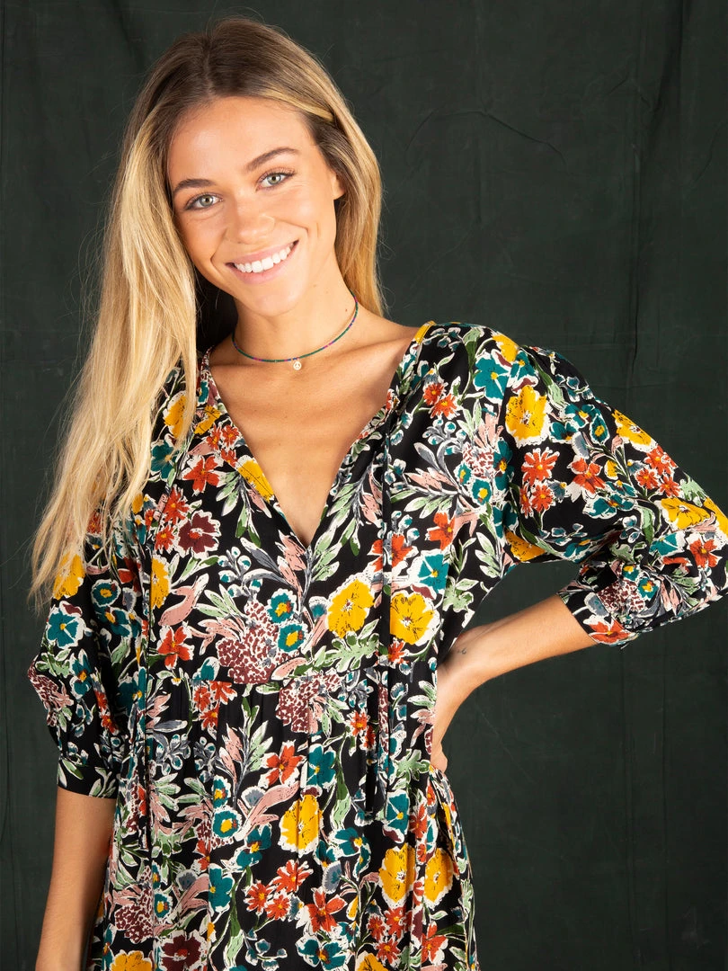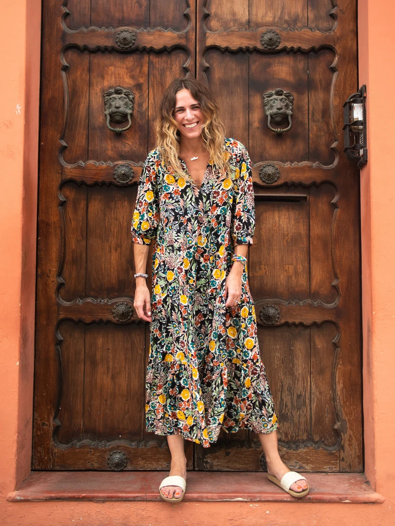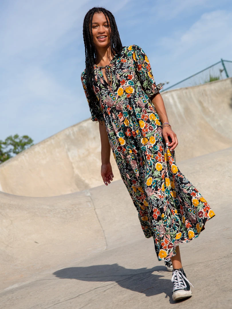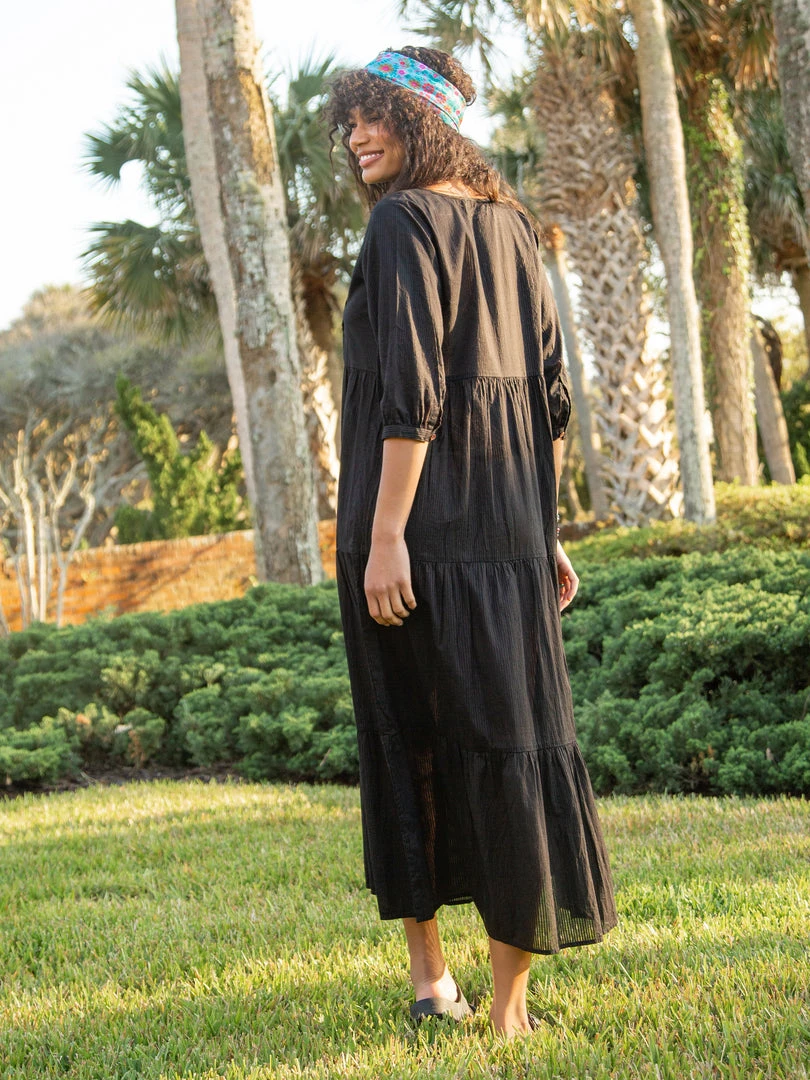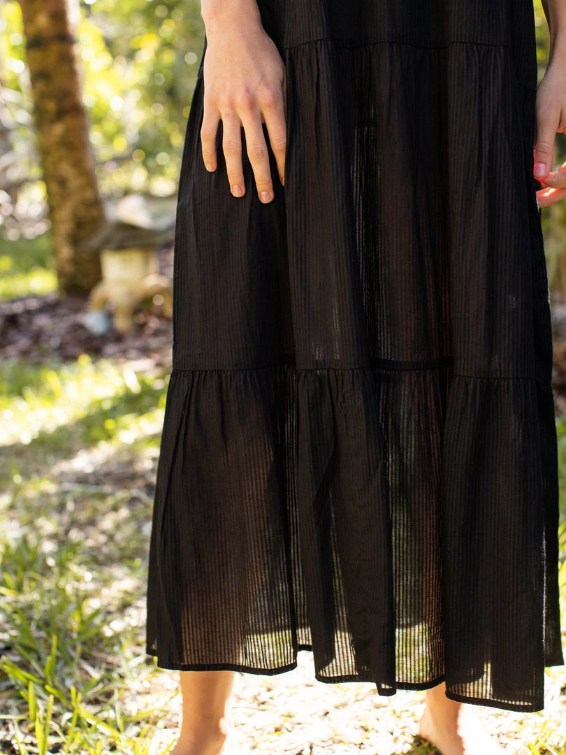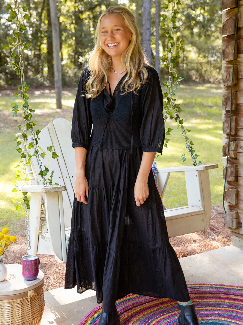 The Sage Maxi is our new favorite dress! With beautiful tiers, puffed sleeves and a flattering v-neckline with ties, you can literally wear this dress anywhere… from running errands during the day to going out at night, it’s a staple piece for sure!