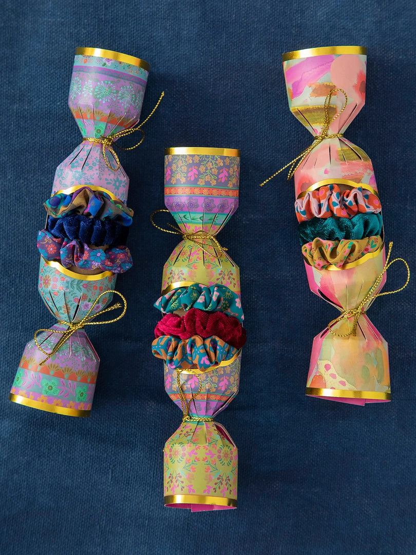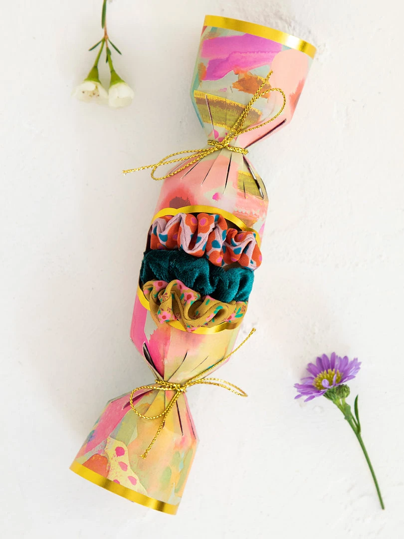 We made a Scrunchie Gift Set that comes in the cutest packaging ever! It features three scrunchies of different prints that look so pretty in your hair or worn on your wrist! You can never have too many scrunchies and they make the perfect gift for anyone!