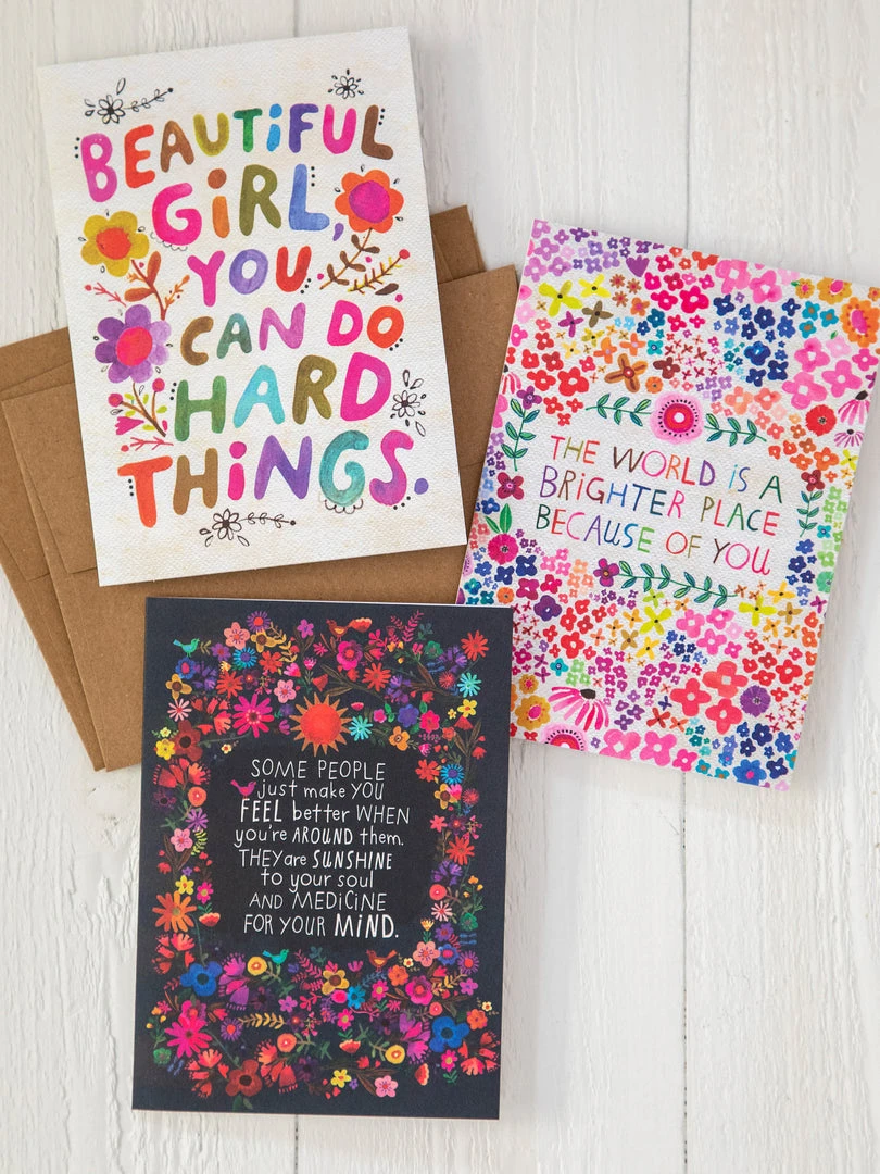 When it’s an occasion for one of your favorite people, you need a stash of special cards for your gift drawer! Stock up with this Greeting Card Set so you can always be ready to send a thoughtful message! This set of 3 features beautiful artwork that will put a smile on their face and the inside is blank so you have plenty of room for your handwritten note. It comes with a cute craft paper envelope to send it in, too!