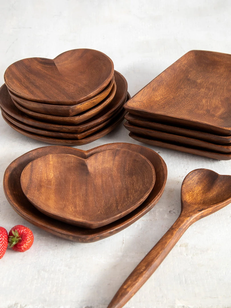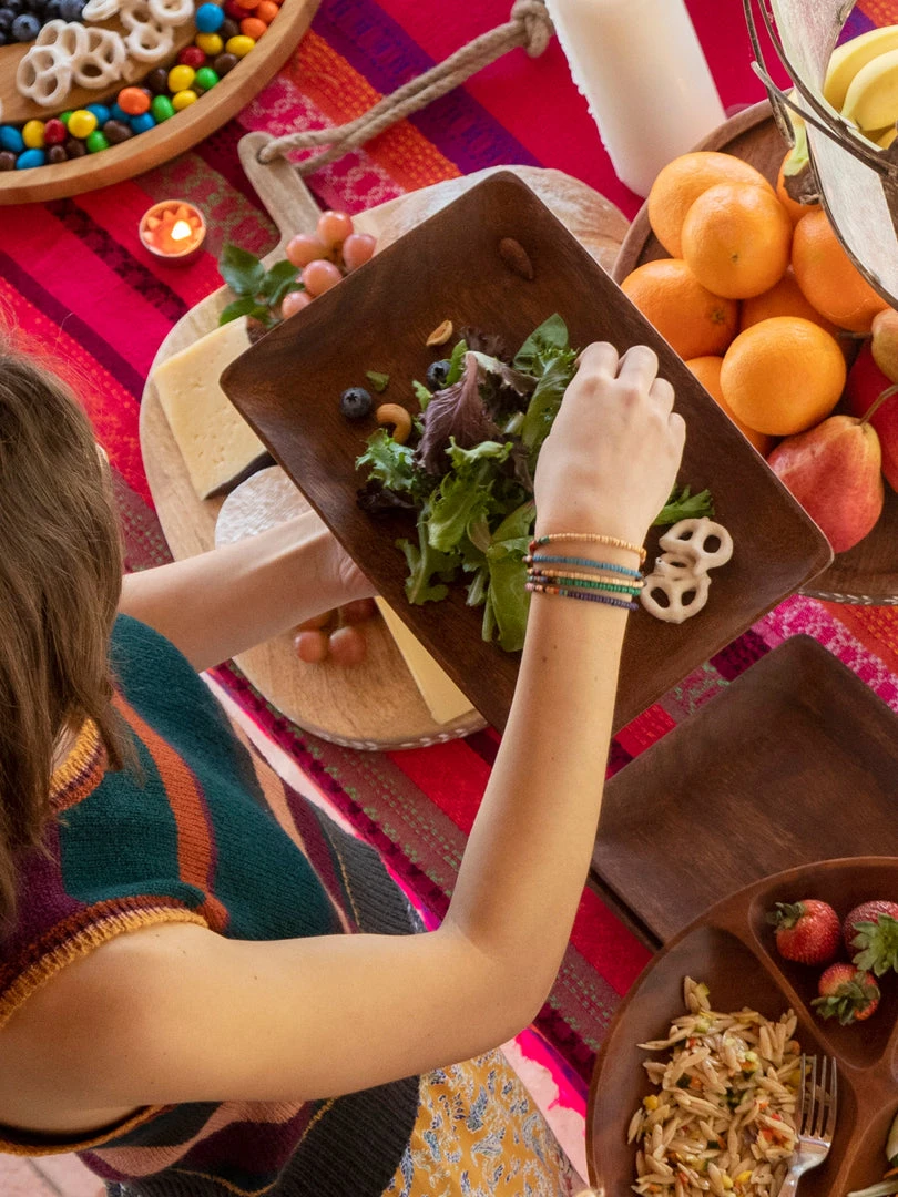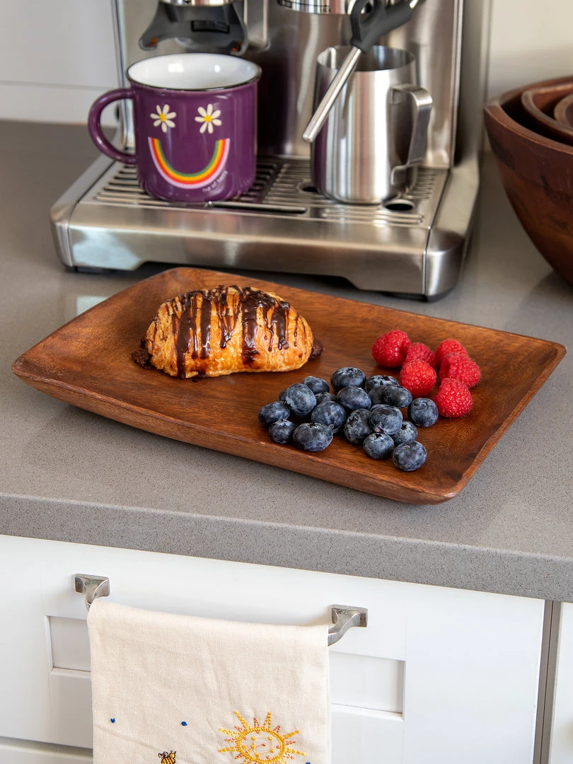 Everyone’s favorite room is the kitchen, and we love making things for it! During our global travels, we stayed at a rustic resort and they served all of our food on wooden plates and platters and they even used wooden serving spoons! They were so cool and inspired us to design something similar for our own homes! This Set of 4 Acacia Plates are hand-carved and so elegant. They’re perfect for fun family dinners & hosting guests… and are so pretty, you’ll want to keep them out even when your guests go home! They’re made from real acacia wood, so they are hand wash only and each plate will be slightly different & unique.