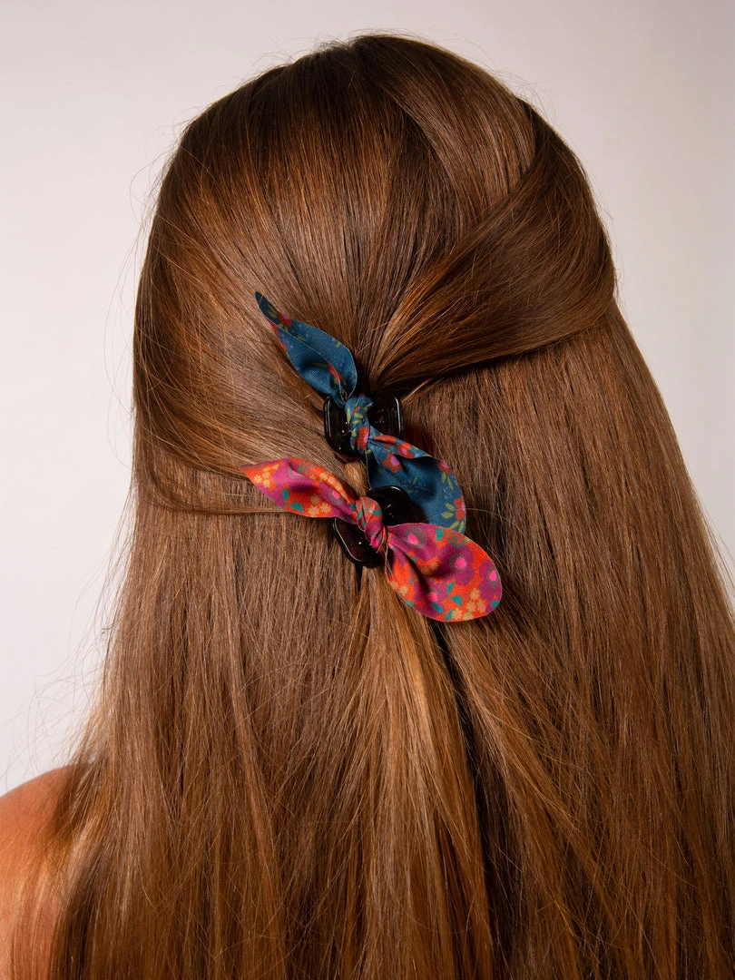 If you’re biggest pet peeve is hair in your eyes, you’ll be obsessed with these Mini Bow Claws! We finally thought of a way to decorate our favorite mini tortoise clips and we just love them! They come as a set of 5 and each clip features a different printed fabric tied around the claw so when you wear it in your hair it looks like you’re wearing a cute little bow! Wear one, or multiple for a fun look… you can even mix and match them with our other hair accessories!