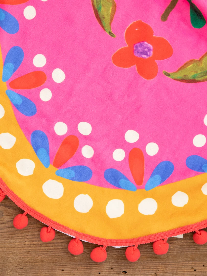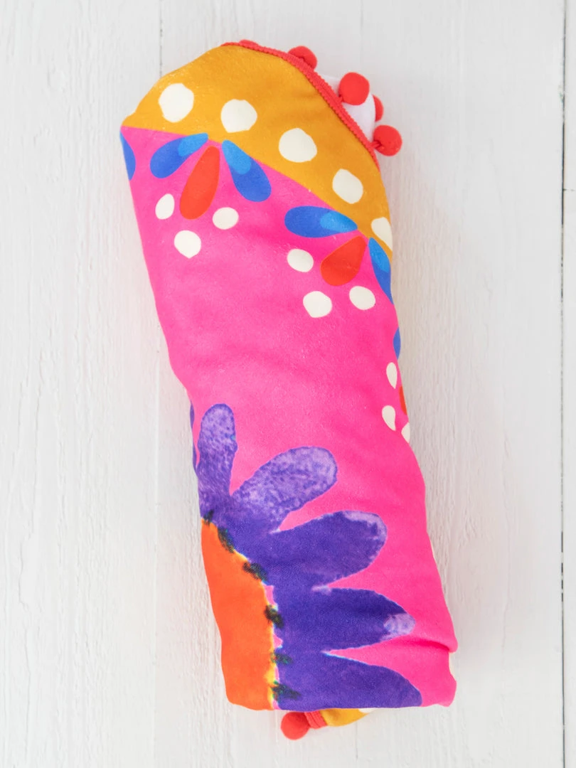 The CUTEST Beach Towel ever, we just love it so much! It features colorful artwork and fun pom-poms along the edges. It’s so bright & happy and makes us want to be outside… we bring ours on picnics, too!