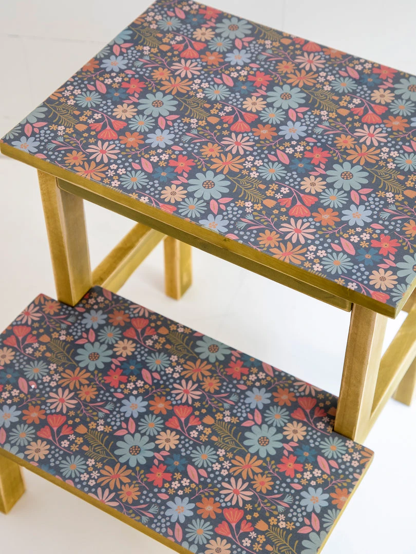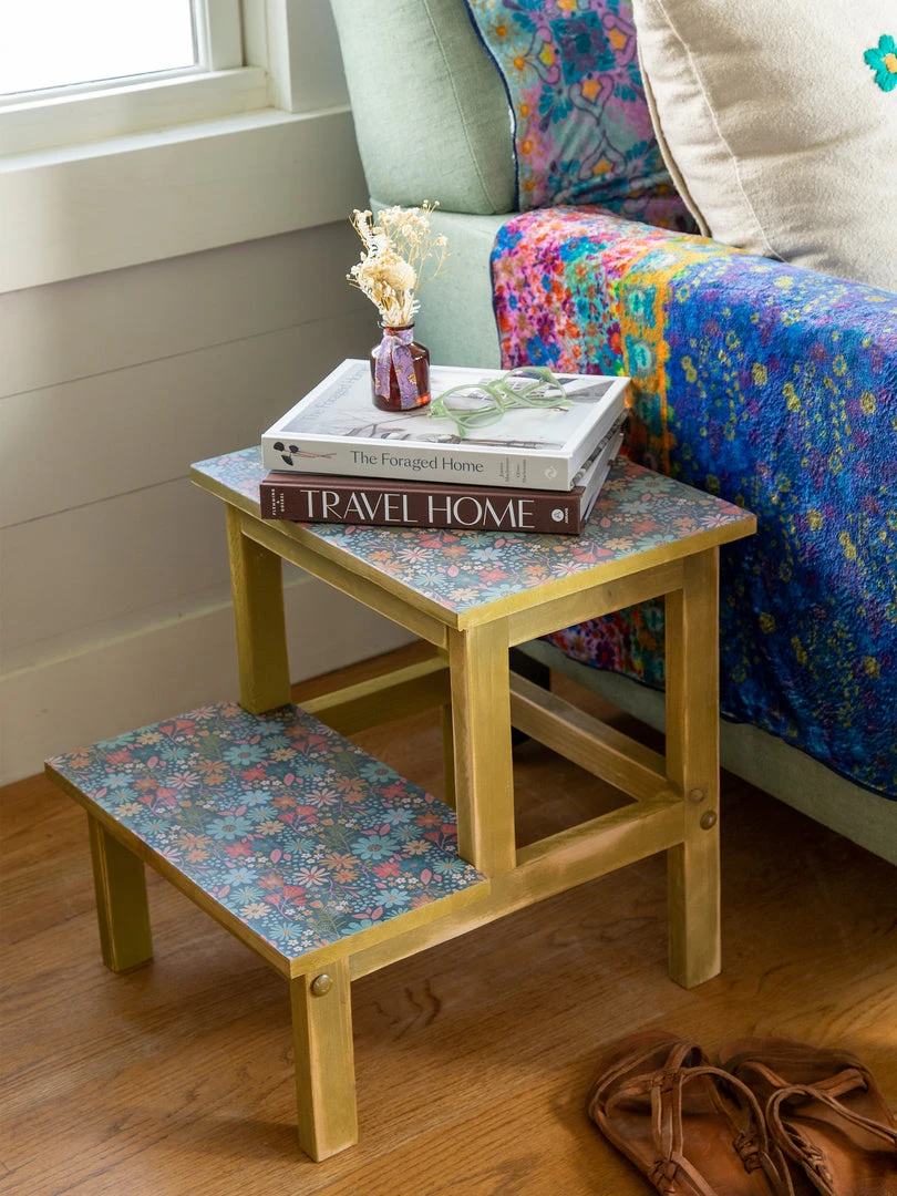 We are always in need of a little step stool… so we made the cutest one ever that also functions as a side table! And it’s not just any stool, it’s printed with the prettiest pattern and looks so cute around the house or even next to your bed as a nightstand! Oh, and in case you’re wondering, it holds up to 250 lbs!