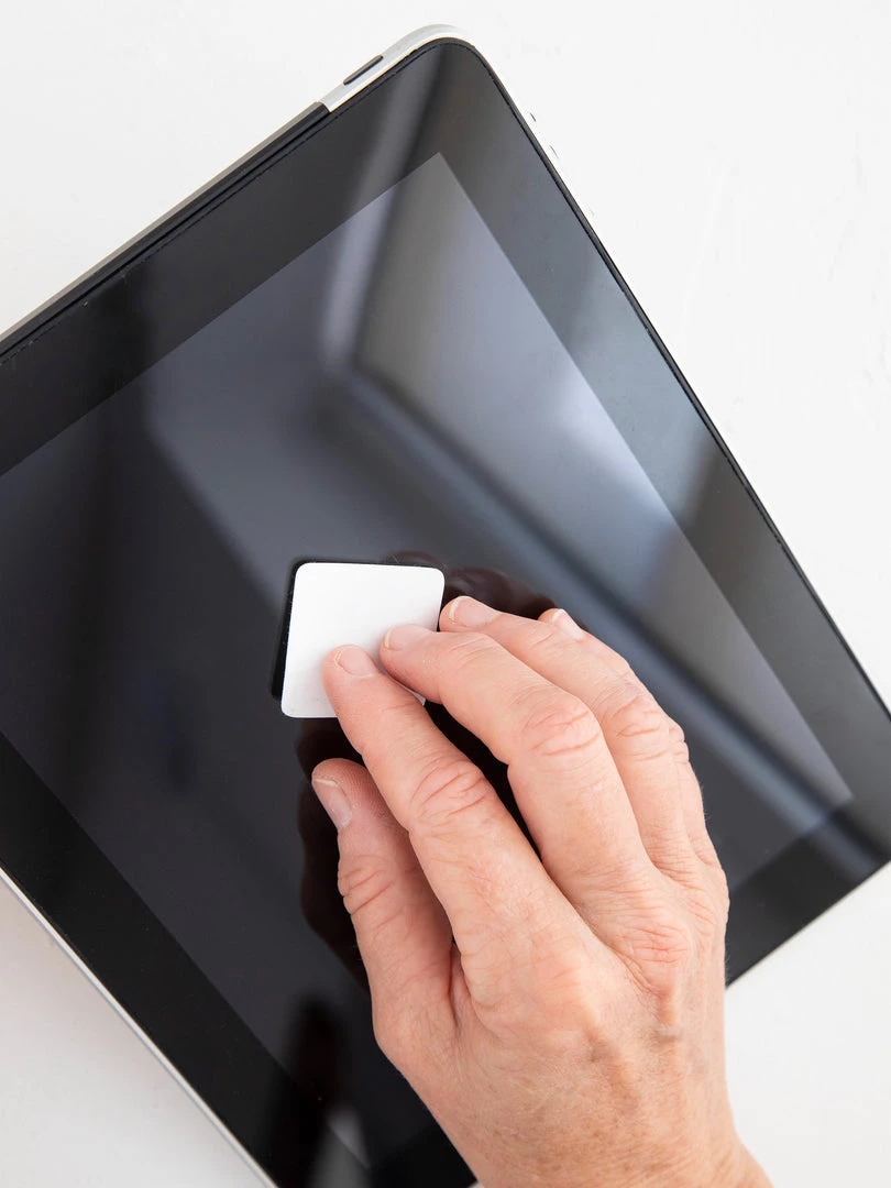 This Stick-On Screen Cleaner comes as a set of 4 and is so convenient! Clean smudges from your phone, computer tablet & camera! They are so easy to use… just peel and stick onto the back of your device or case, wipe your screen and re-stick to your device to use again & again!