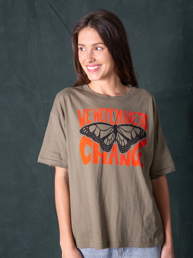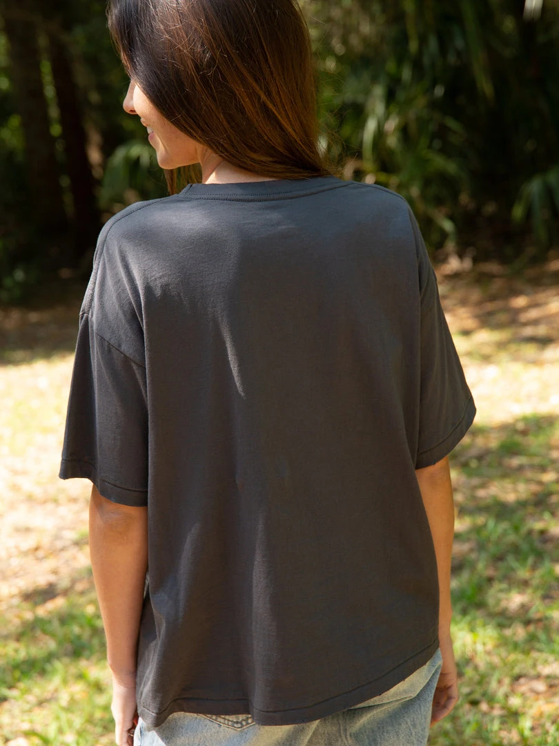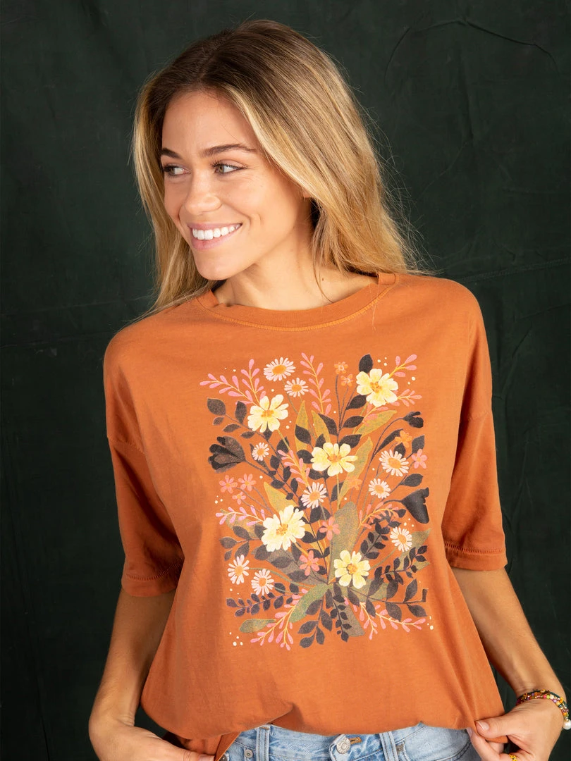 We love graphic tees! The Remi Tee is so cute with its colorful printed graphic and sentiment… you’ll feel the comfort of wearing a tee while still looking good! It features cute distressed details and dropped shoulders for a relaxed look. It looks good tied up with your favorite jeans or worn with any of our bottoms! It will be your new favorite! Compare our tee styles here!