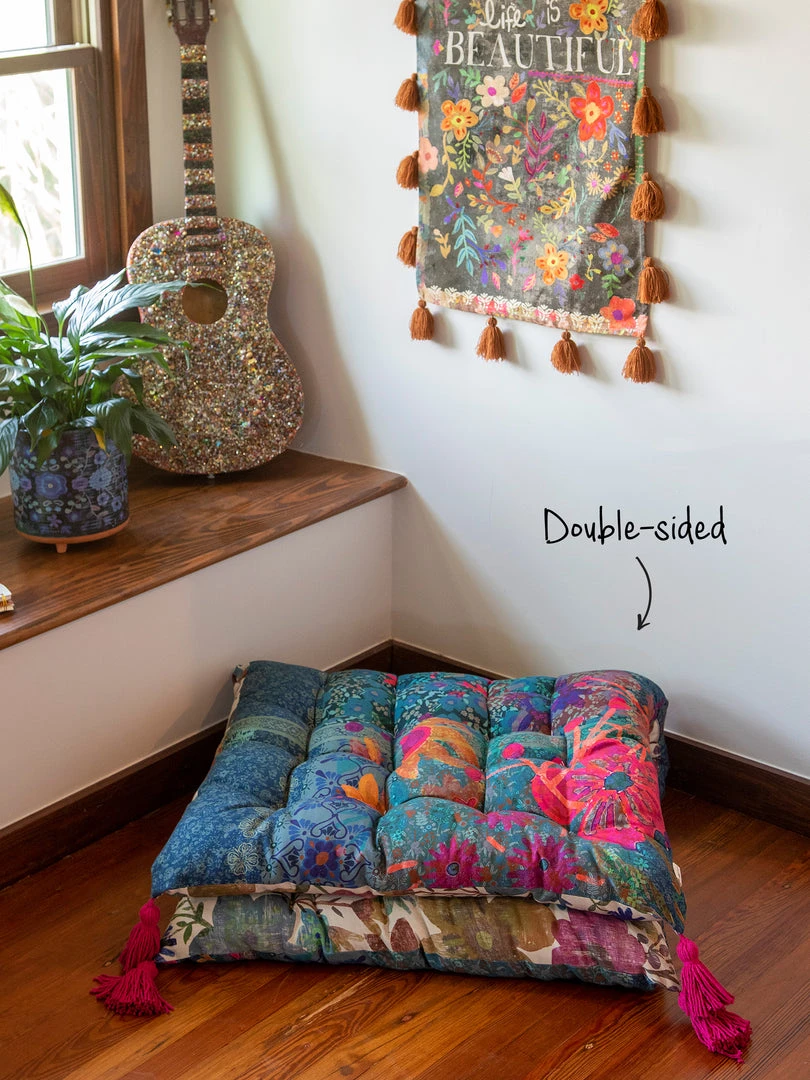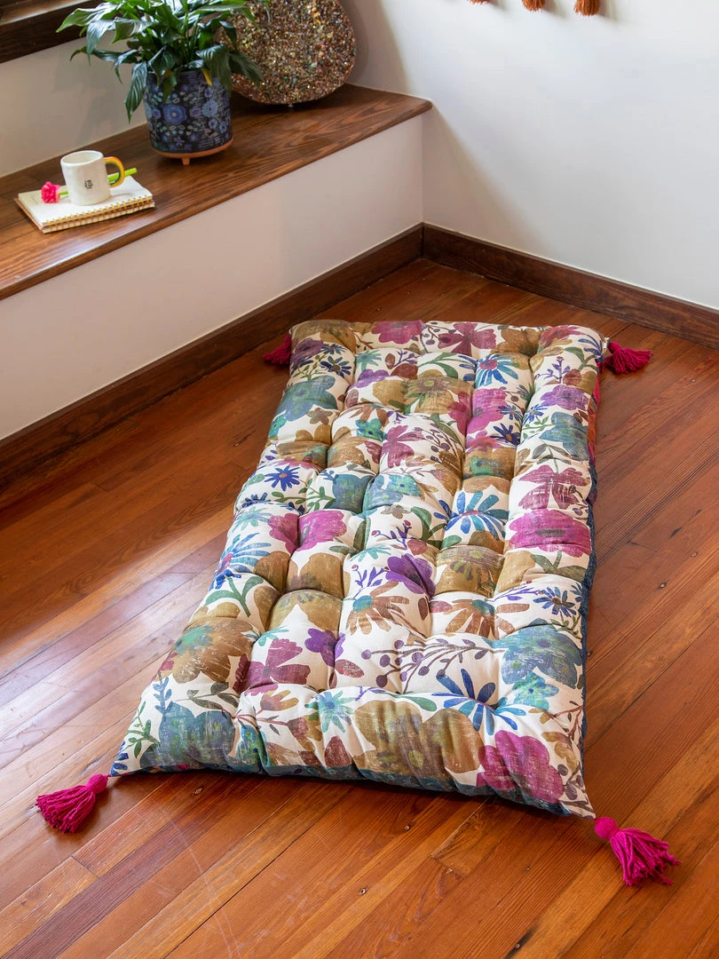 This Tufted Lounge Bed is so soft & cushy! It’s so versatile… perfect for extra seating, sleepovers, throwing over outdoor furniture, lounging next to your pool or sitting by the firepit… it can even be a bed for your pups! They’re meant to be lived on… the more you use it, the comfier it gets!