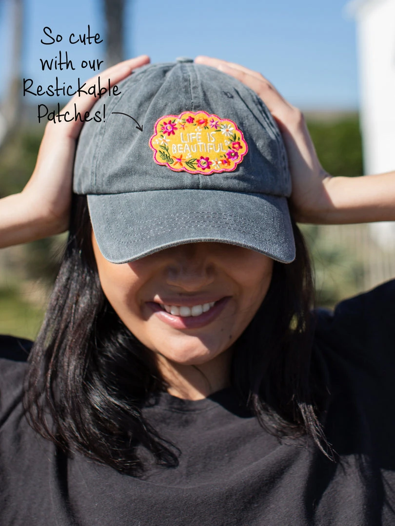 This Washed Cotton Hangout Hat is perfect for the on-the-go girl! It features an embroidered sentiment on the back and a super cute trim strap adjuster! It’s so easy to wear, you’ll want one in every color! Wear it plain with literally any outfit or accessorize it with one of our cute Restickable Patches that come in an assorted set… they’re so fun & you can wear a different one every day! (Patches not included!)